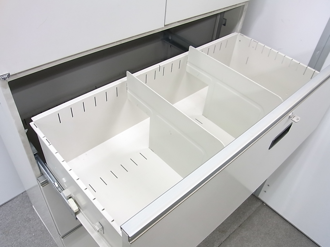 - 一部不具合ありそ引出の開閉不可、施錠不可、棚板無しといったの書庫の本来の効用を果たすための機能以外の一部が使用不可(例、扉、引出の開閉がしづらいなどがある。 )