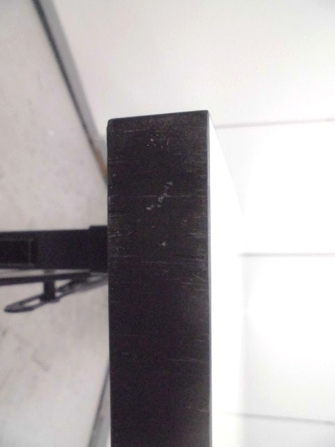 - 目立つ箇所あり傷・凹みが多数、深い傷・凹みが一部ある。(例、天板、幕板、棚板、サイド部分、脚部等にある。)