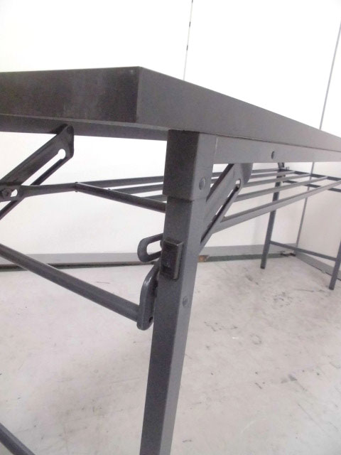 - 多数不具合あり天板歪み、アジャスター無し、キャスター使用不可ようなそのテーブルの本来の効用を果たすための機能以外の多数が使用不可な状態。(例、キャスターロッ ク機能使用不可、棚板無し等がある。)