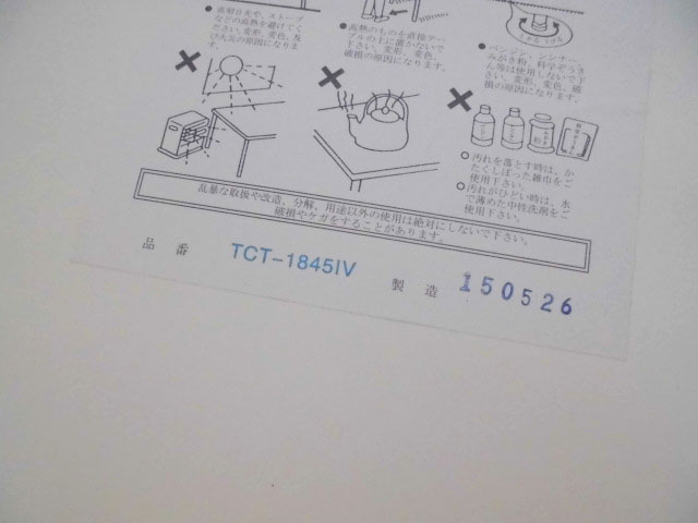 - 壊れている天板歪み、アジャスター無し、キャスター使用不可のようにそのテーブルの本来の効用を果たすための機能に不具合がある。