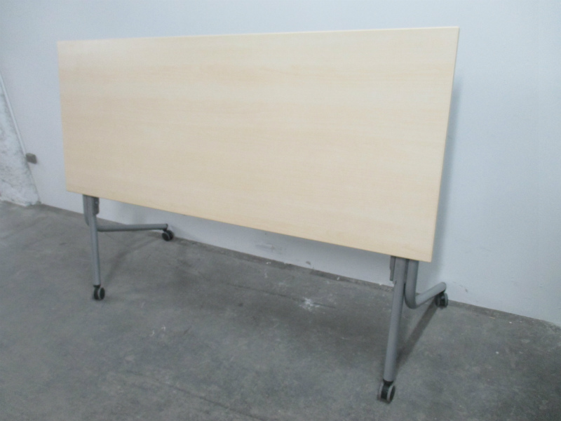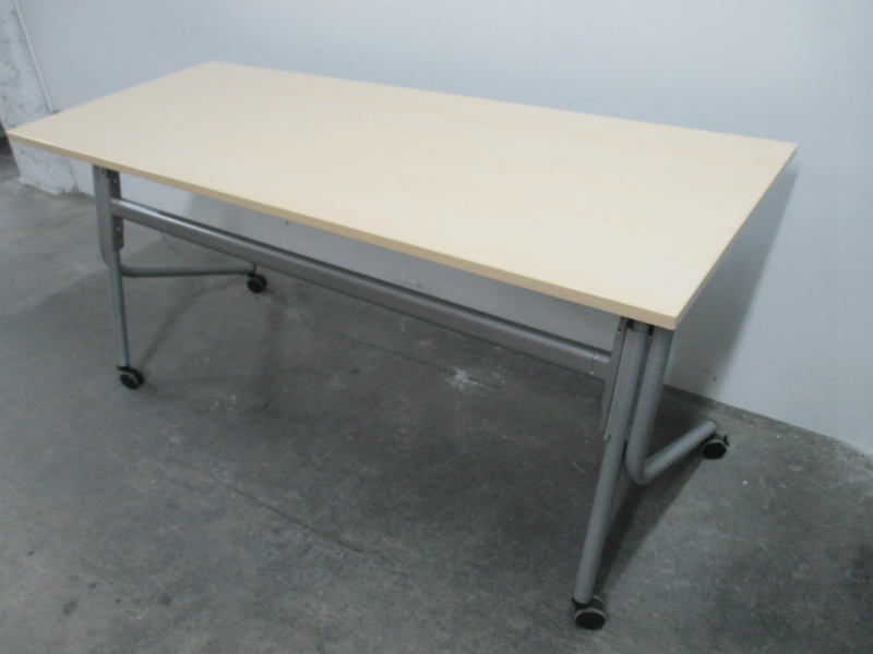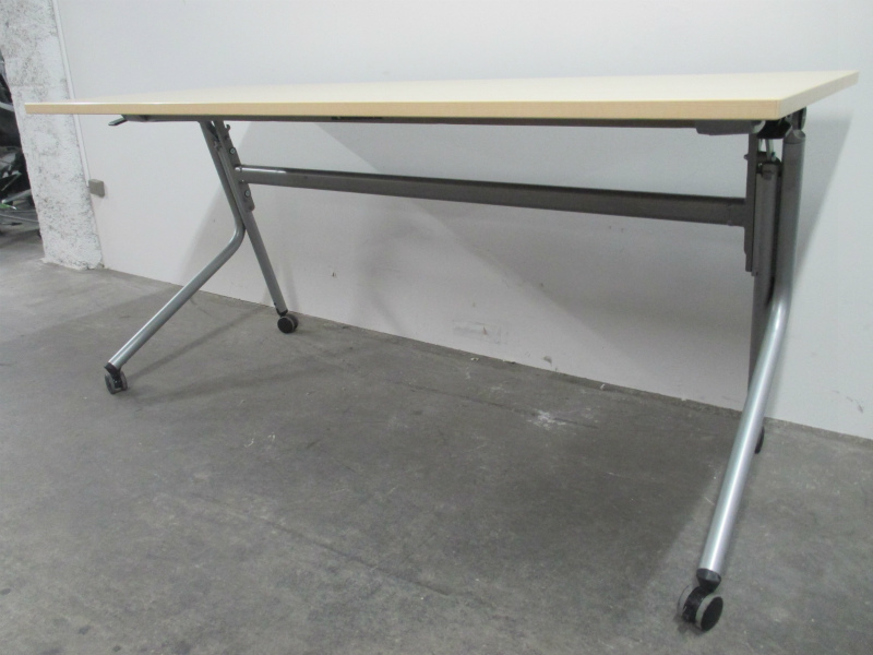 【2台入荷!】奥行600でゆったりとした使い方が可能!オカムラ製スタックテーブル!【中古オフィス家具】【キャスター付き】【木目】- 川崎店