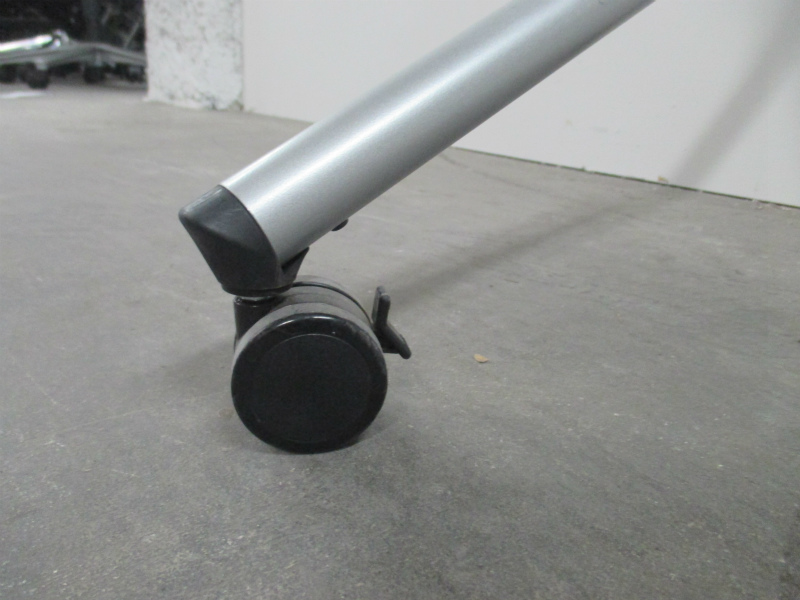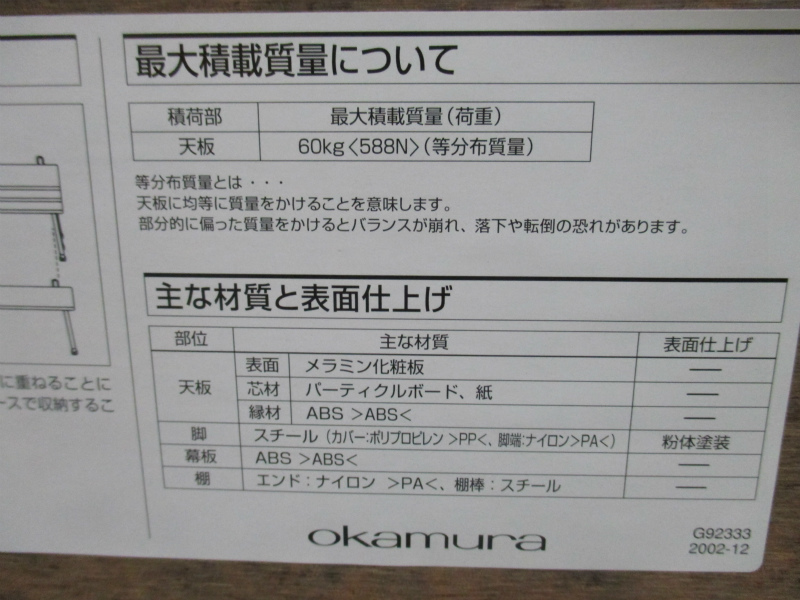 - 一部不具合あり天板歪み、アジャスター無し、キャスター使用不可ようなそのテーブルの本来の効用を果たすための機能以外の一部が使用不可な状態。(例、キャスターロッ ク機能使用不可、棚板無し等がある。)