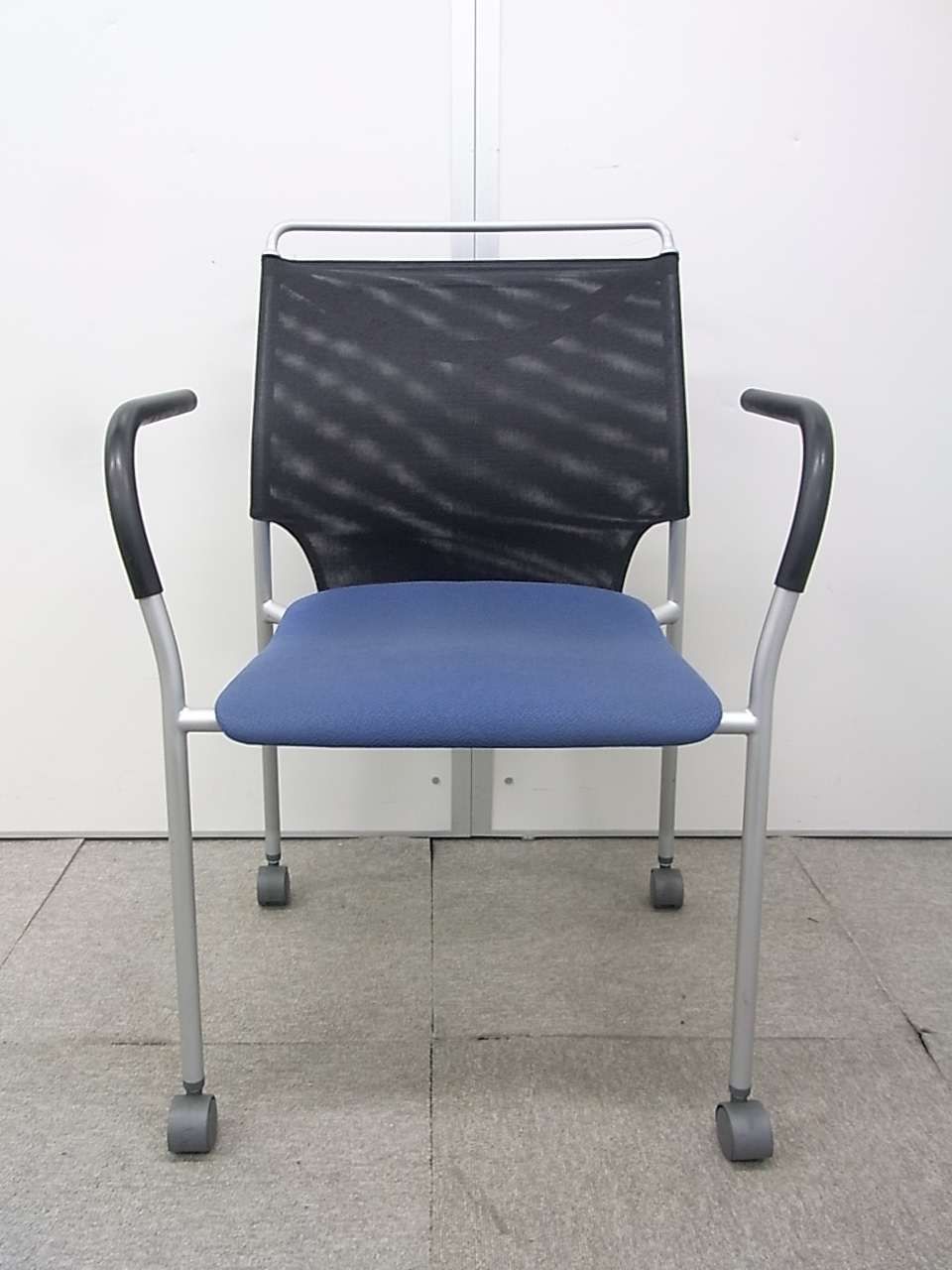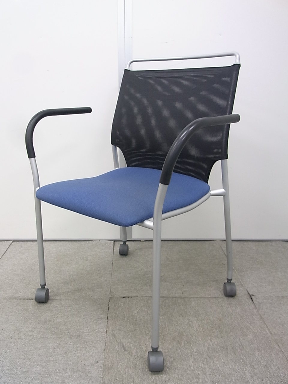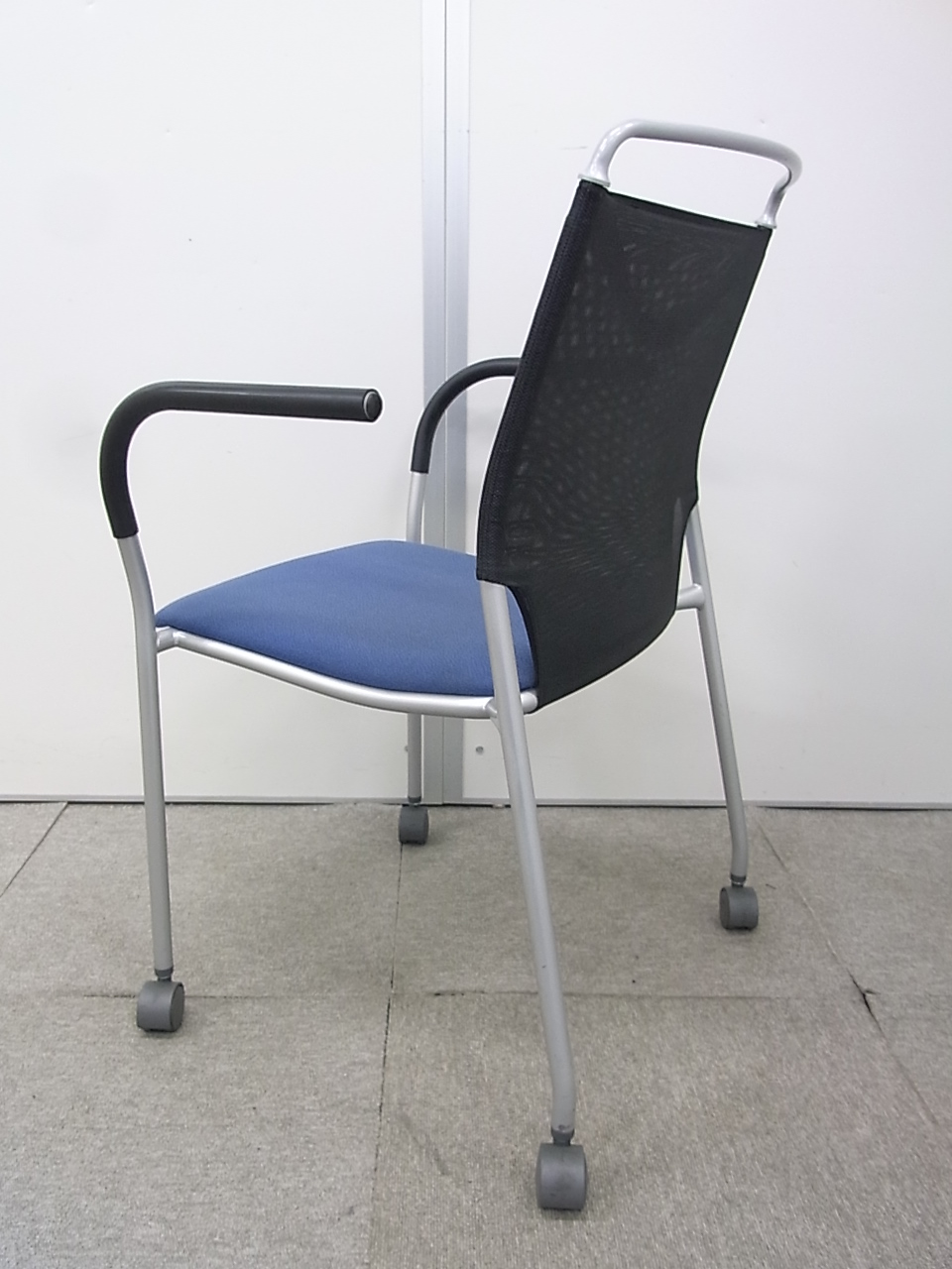 【4脚入荷!これは安い!!】キャスター付きスタッキングチェアが入荷!肘置き付き 背面メッシュのお洒落チェア!- 在庫数
