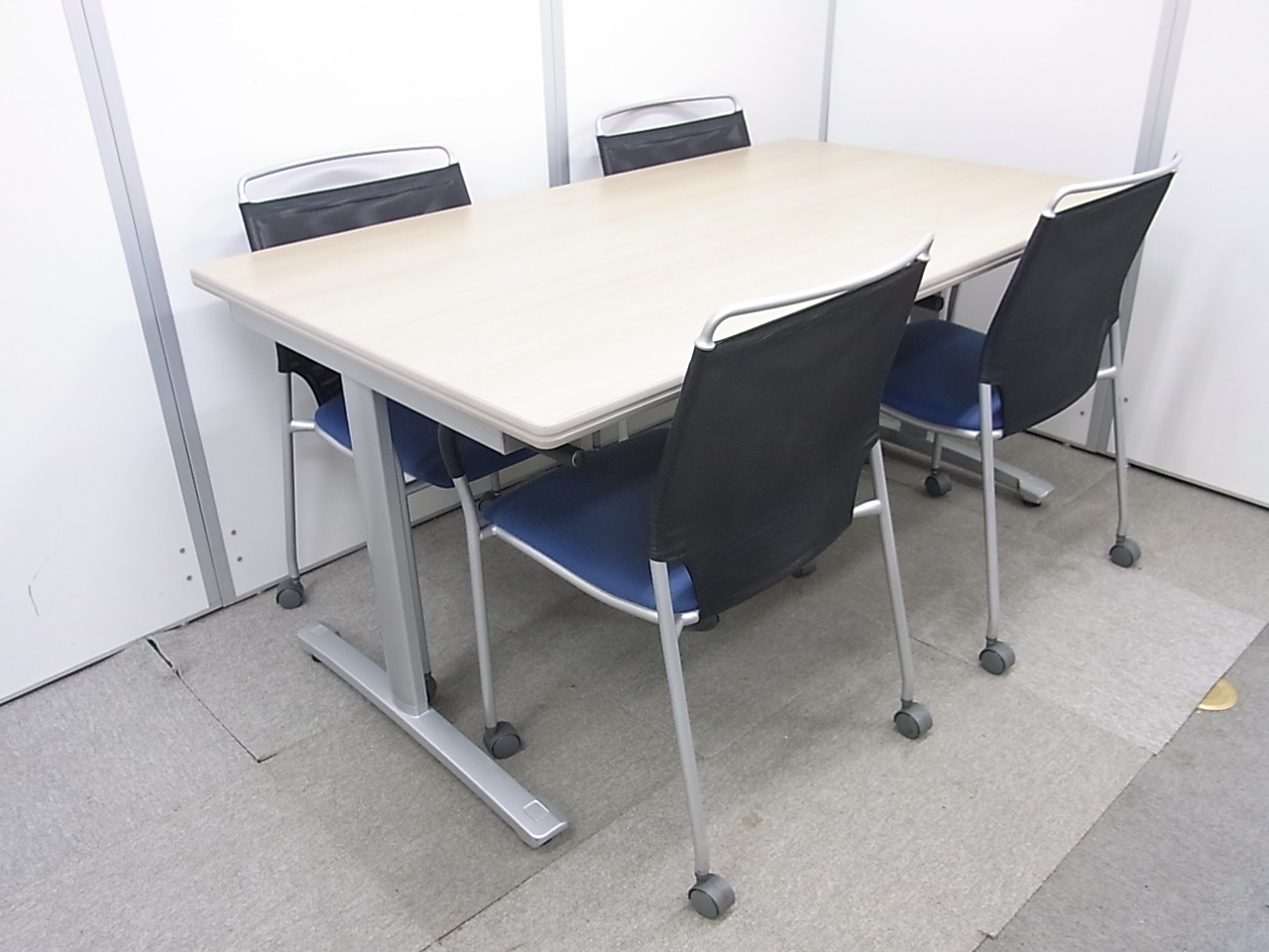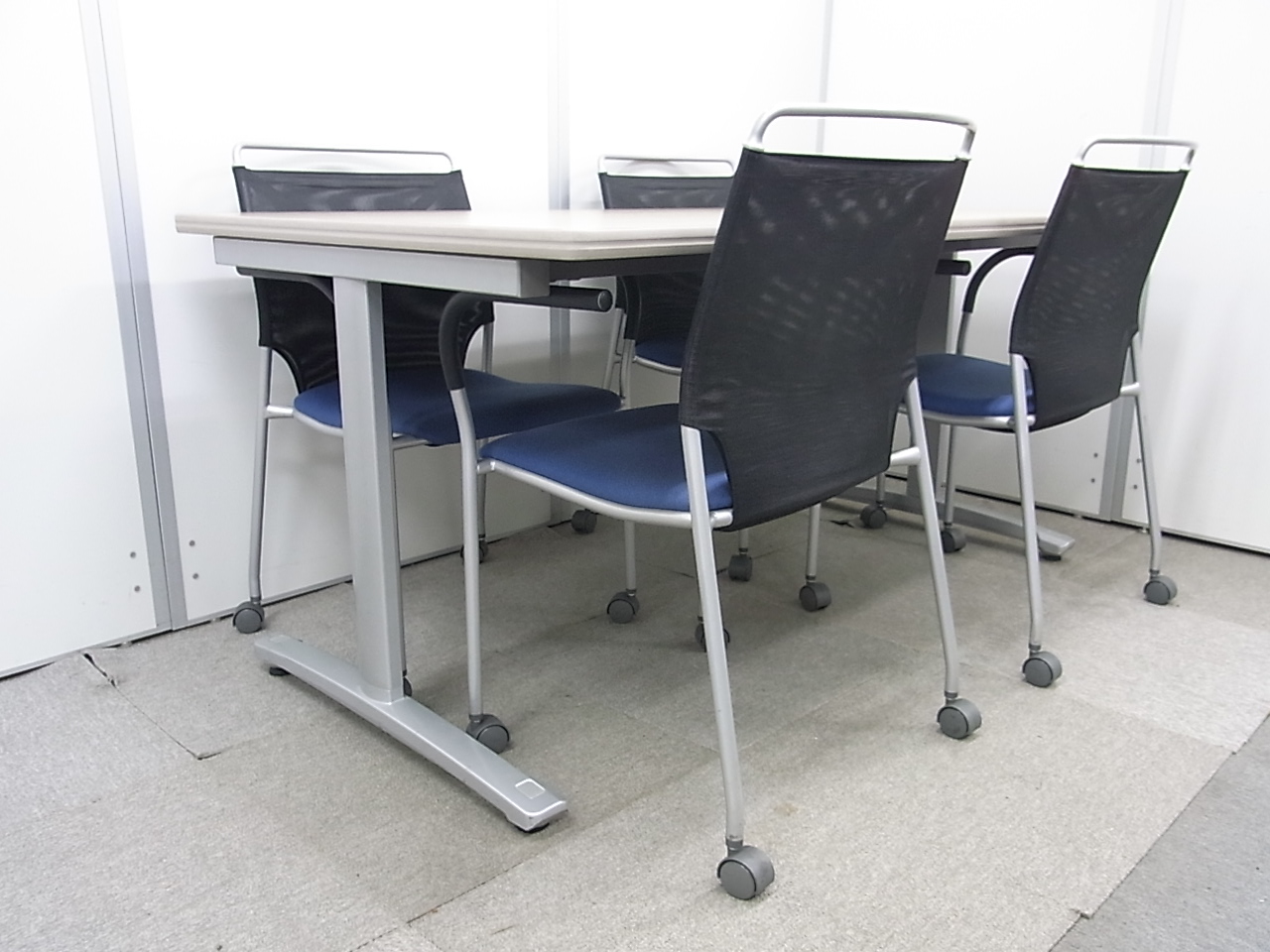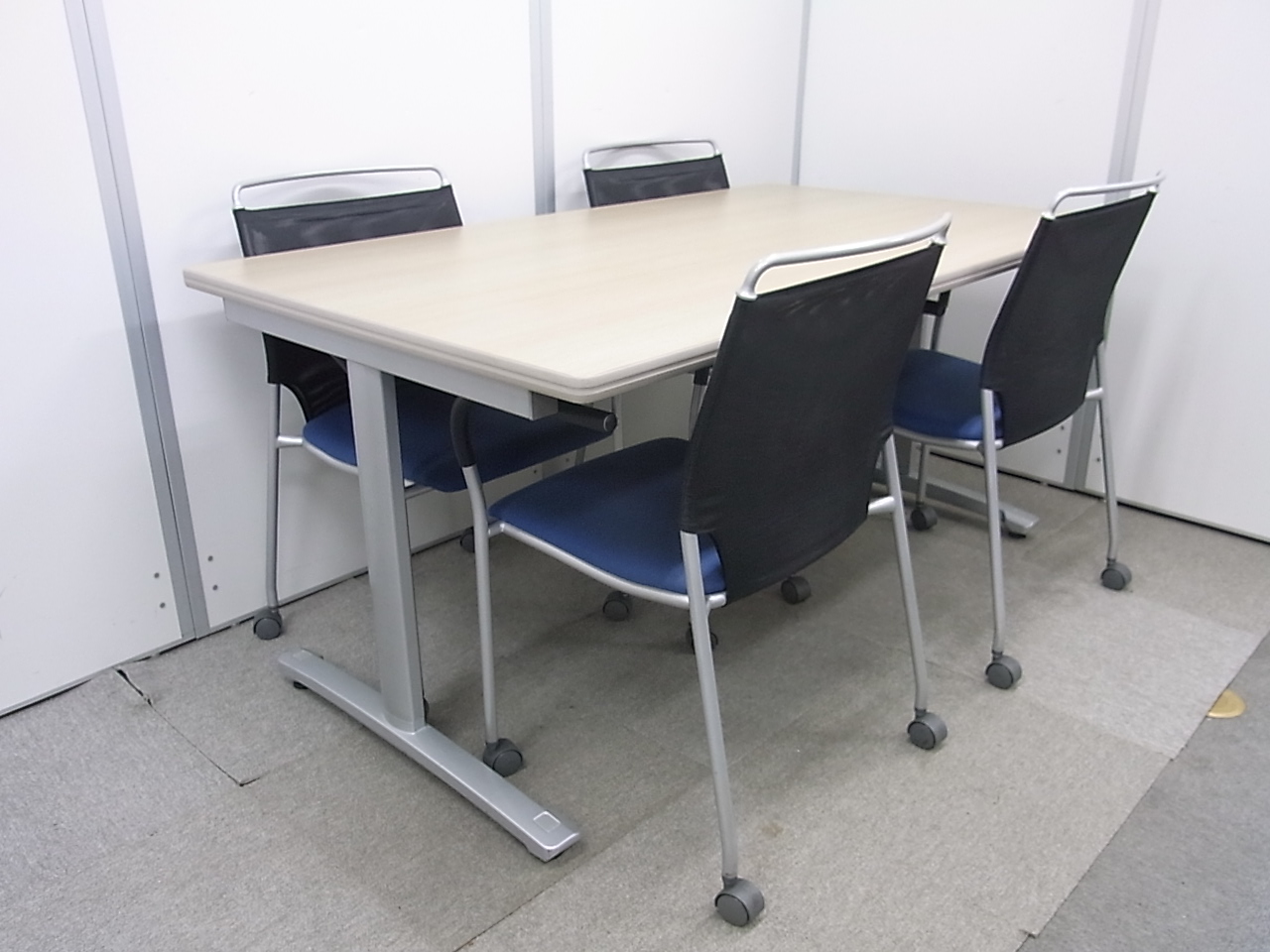 【5点セット!】コクヨ製ミーティングテーブルとお洒落なミーティングチェアセット!これ1台で簡単会議スペース!- 在庫数