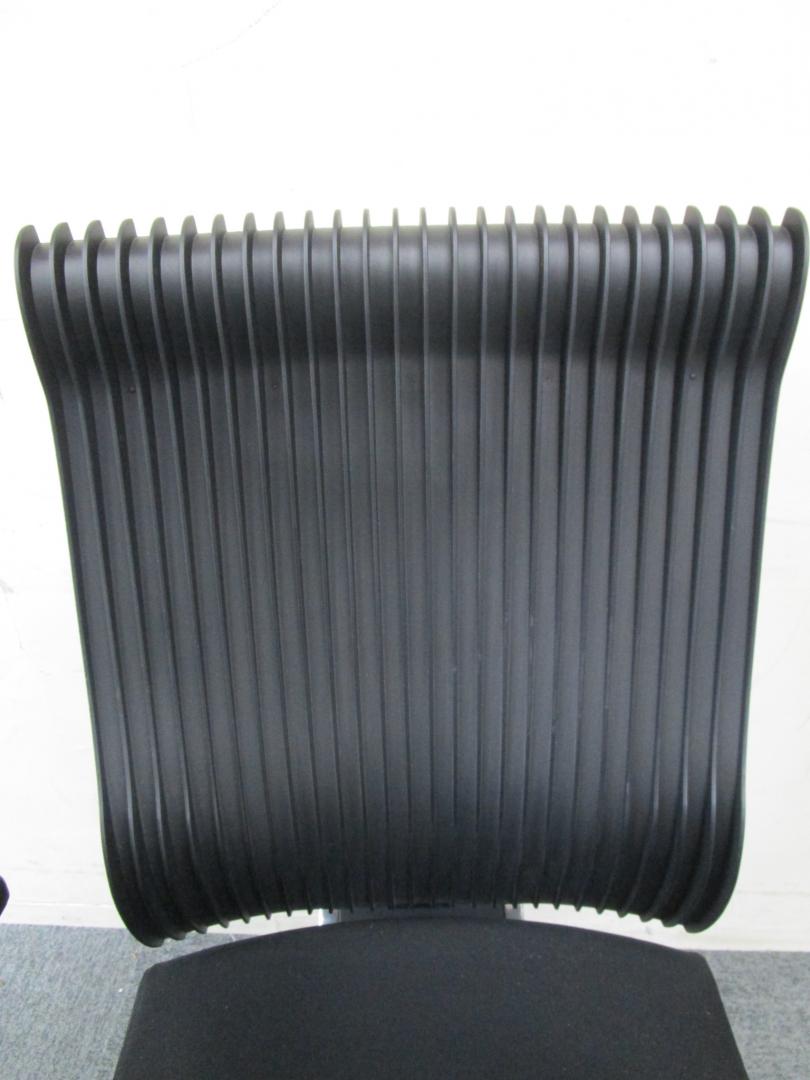 見た目は少し硬そうに見えるエラストマー素材ですが、座ってみると程よいしなり具合のやわらかな座り心地で、背中が痛くなるようなことはまるでありません。面ではなく線で支えることで、背面の通気性の良さは抜群です。