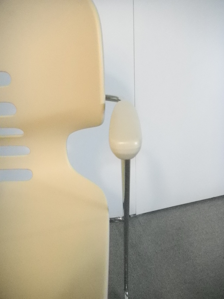 - かなり強い濃い黄ばみ・変色が商品全体にある。(例、座面・背もたれ、脚部等にある。)