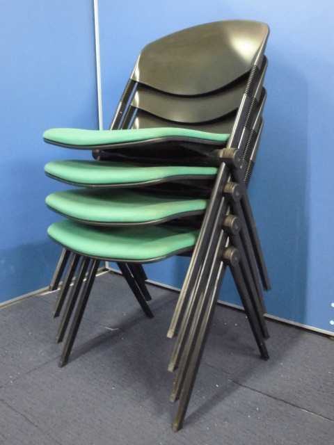 【デザイナーズ家具】vitra製|スタッキングチェア4脚セット|グリーン×ブラック|ミーティング用などに!【セット商品】- 立川・八王子店