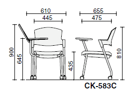 メモ台付スタッキングキャスター付チェア