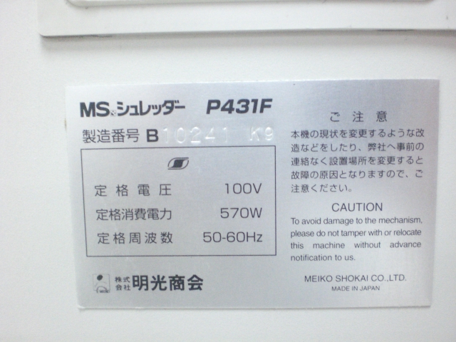 【中古】 MS-P431F 明光商会 シュレッダー 147742