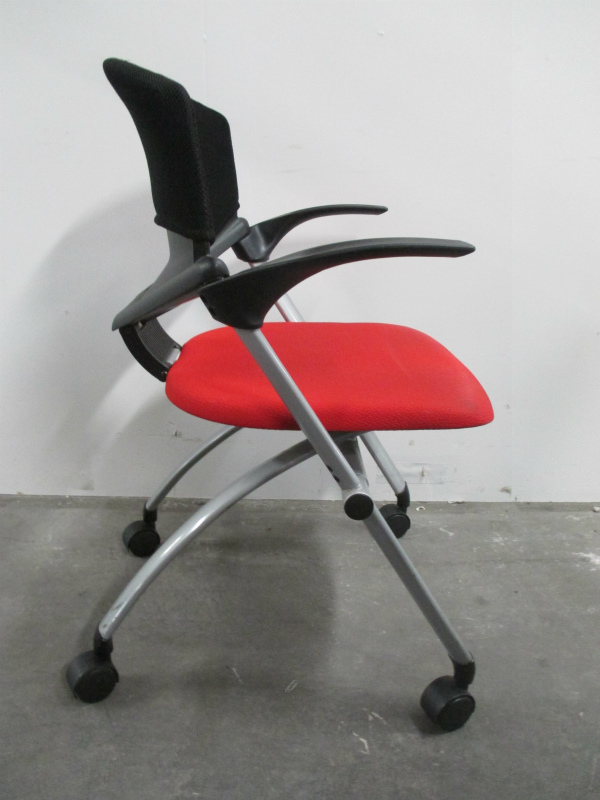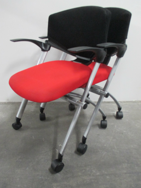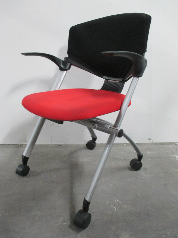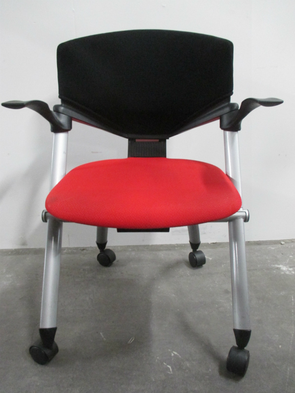 【2脚入荷!】コクヨ製スタッキングチェア コルサ 赤と黒のカラーリングがオシャレ!【中古オフィス家具】【会議用】- 川崎店