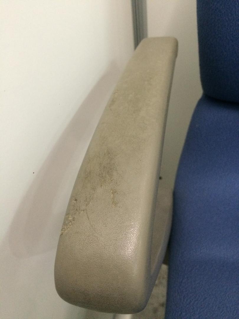 - あり黄ばみ・変色が広い範囲にうっすらある、または濃い黄ばみ・変色が一部ある。(例、座面・背もたれ、脚部等にある。)