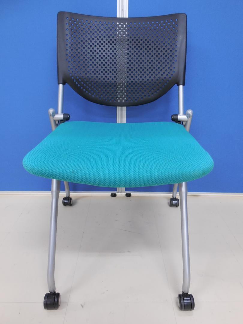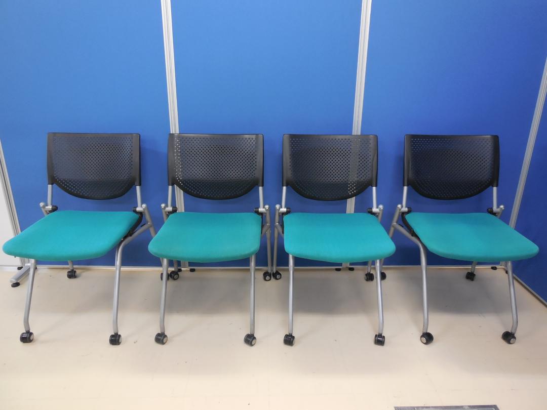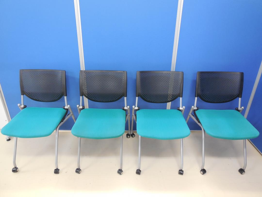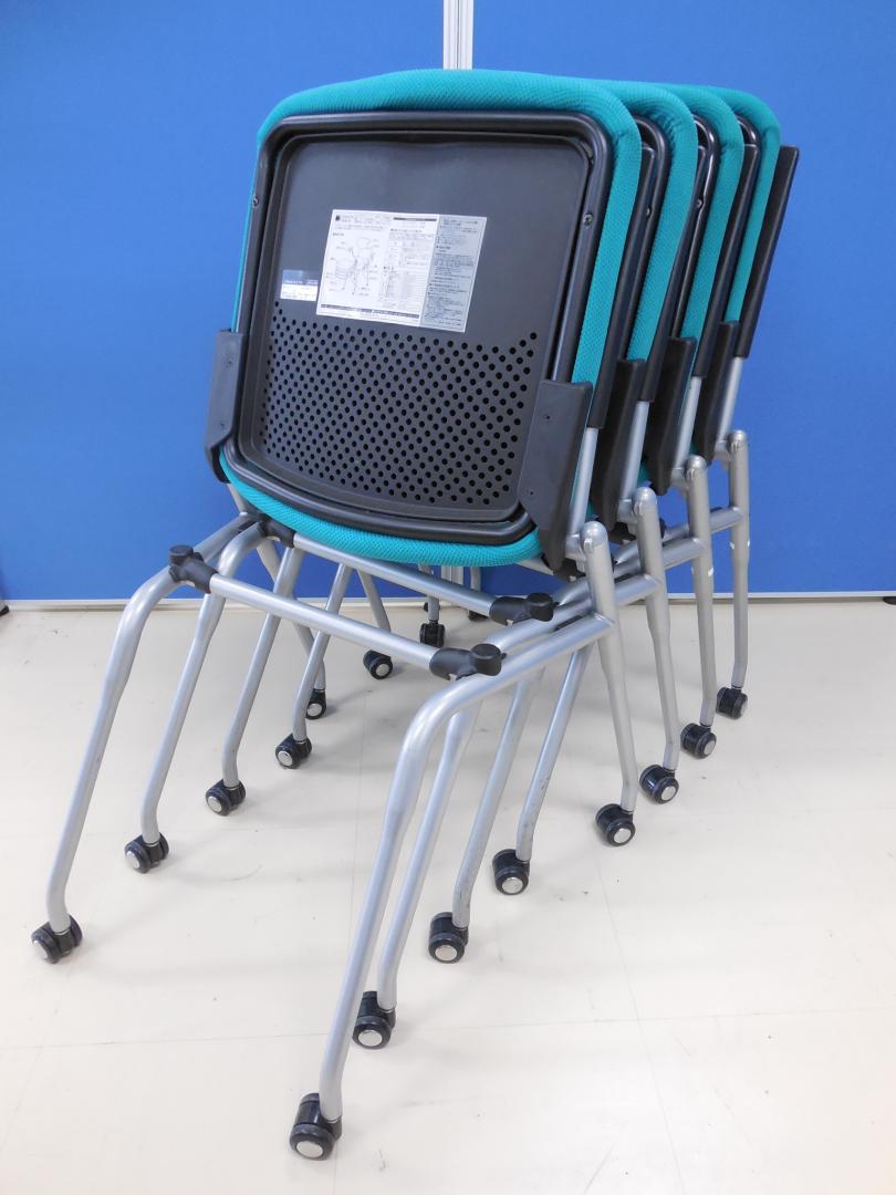 【4脚セットで1,000円OFF】岡村製作所製 プロスタックチェア 目にも心にも優しい癒しのグリーン色■キャスター付きで移動もスーイスイ!【使用しないときは畳んで収納可能】【ネスティングチェア】- 足立・葛飾店