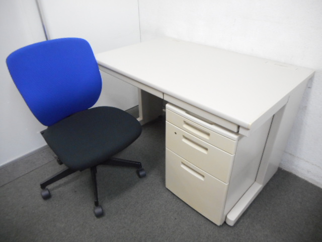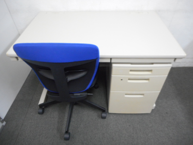 【★売れ筋セット!】■平机(W1100mmサイズ)& 3段ワゴン & プラオチェアセット【新宿店・お買い得品】- 在庫数