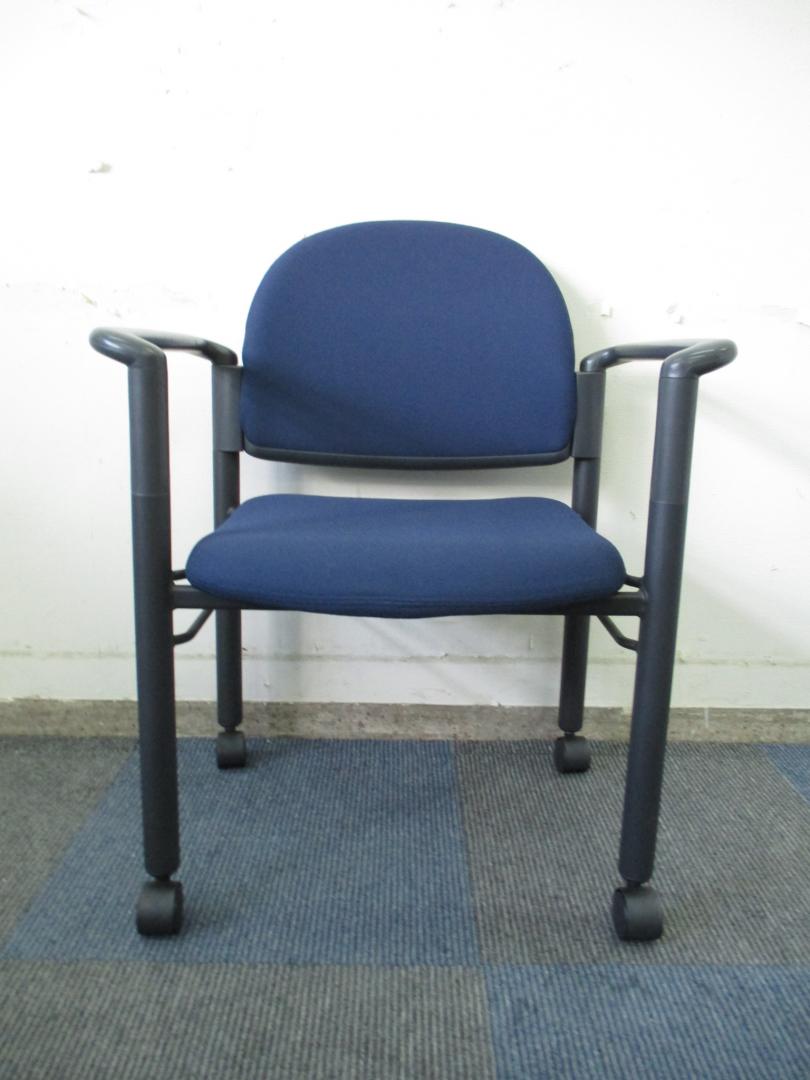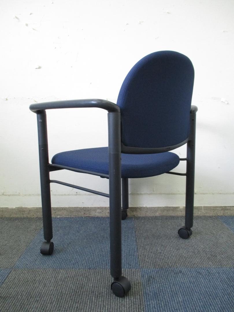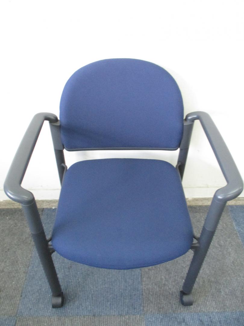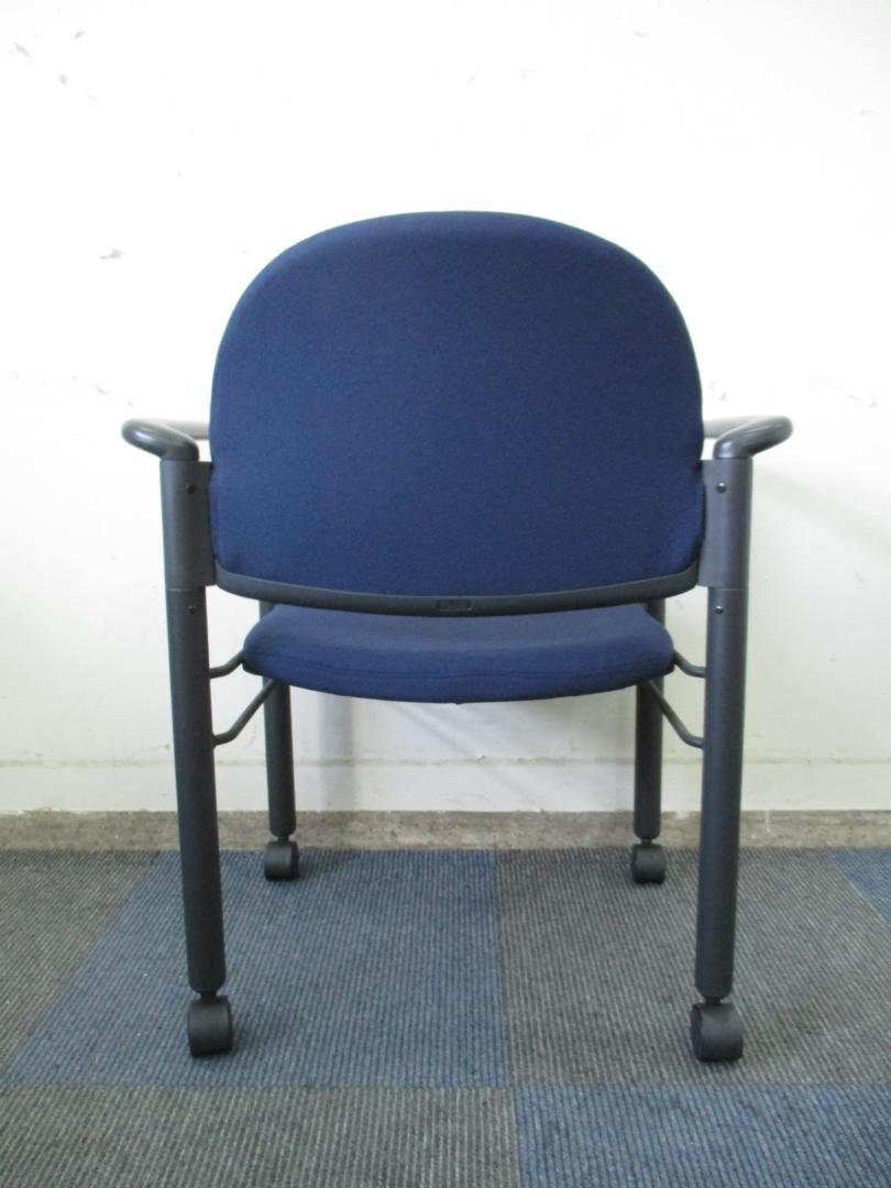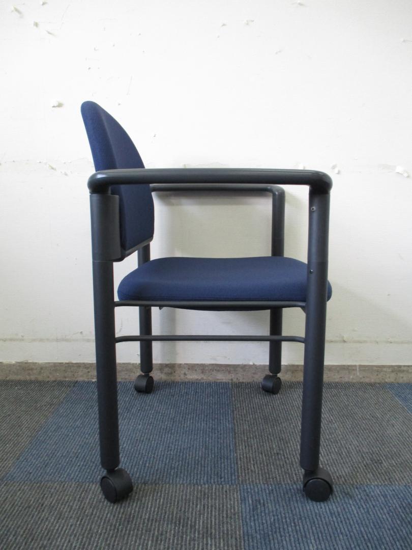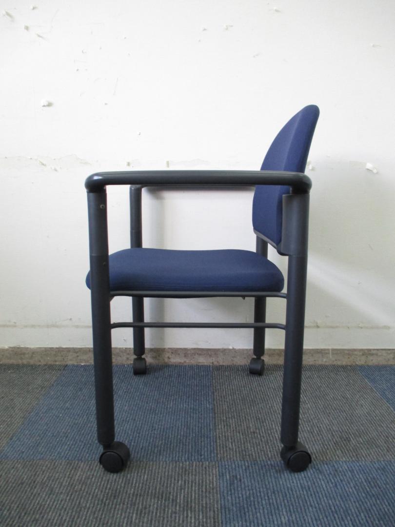 【状態良好品】PLUS製 肘付き ミーティングチェア【落ち着いたネイビー色】- 千葉店