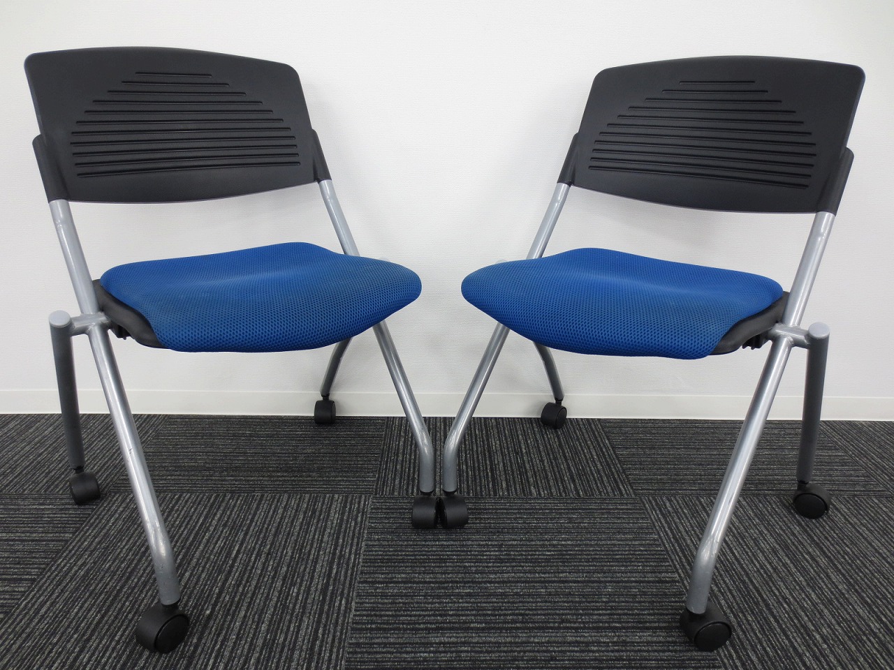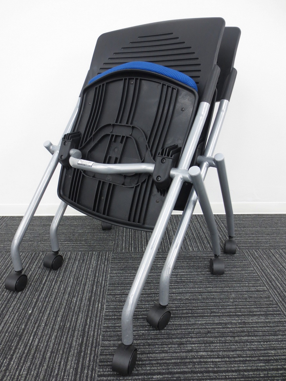 【キャスター付きで便利な会議用チェア】【人気のブルー色】ネスティングチェア【相模原・町田店】- 春日部・越谷店