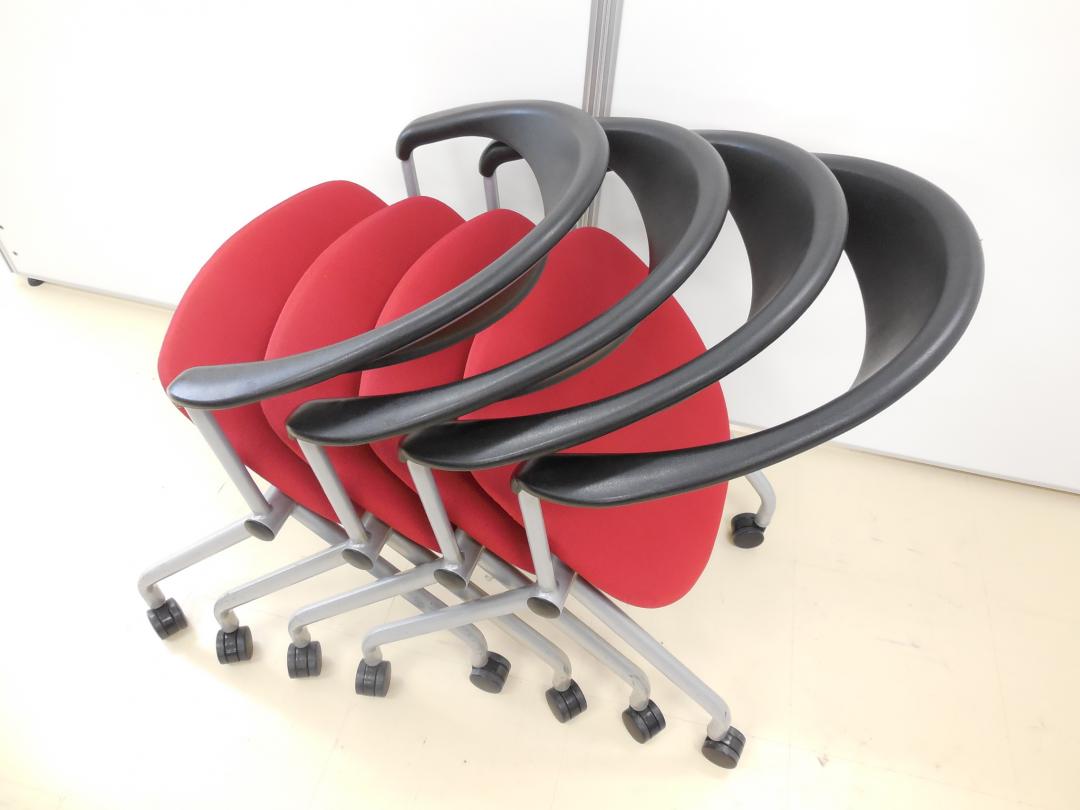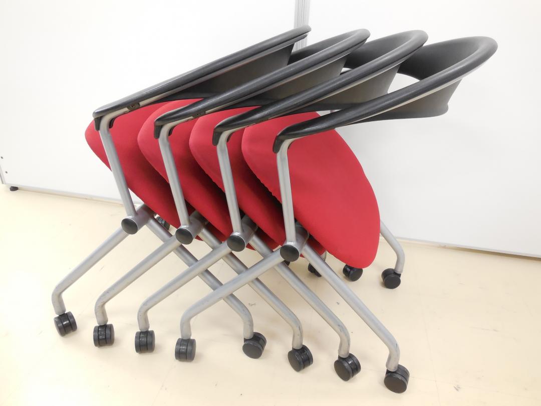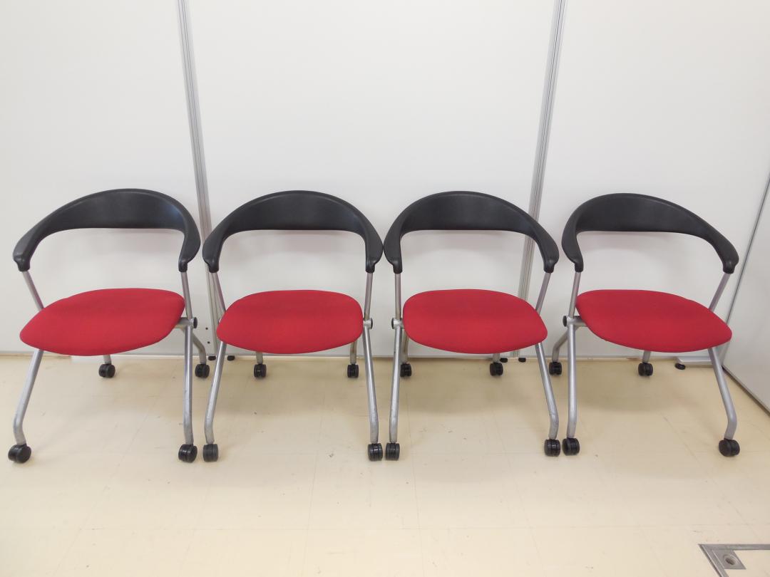 【4脚セットで1,000円OFF!】内田洋行製 ネスティングチェア■セミナー・会議室で大活躍の商品が出荷を待ち侘びています!■ WE ARE RED!!華やかレッド色!【状態良好】- 足立・葛飾店