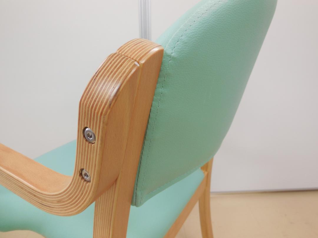 【新品商品が安い!】木製スタッキングチェア■淡いパステルグリーン色が心地よいです!■介護用としてご使用頂けるタイプになります。【新品商品】【介護向け商品】- 足立・葛飾店