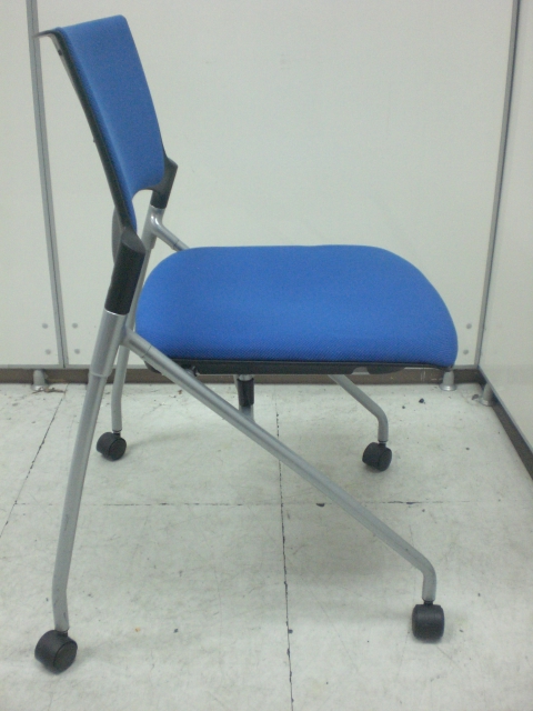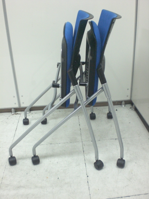 【2脚入荷】座面が跳ね上がり、横収納可能! 状態良好のブルー色ネスティングチェア- 京都東寺店