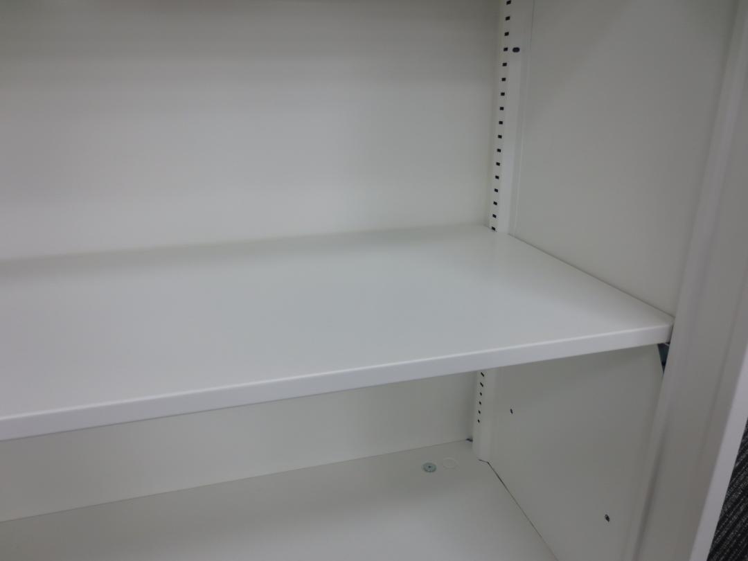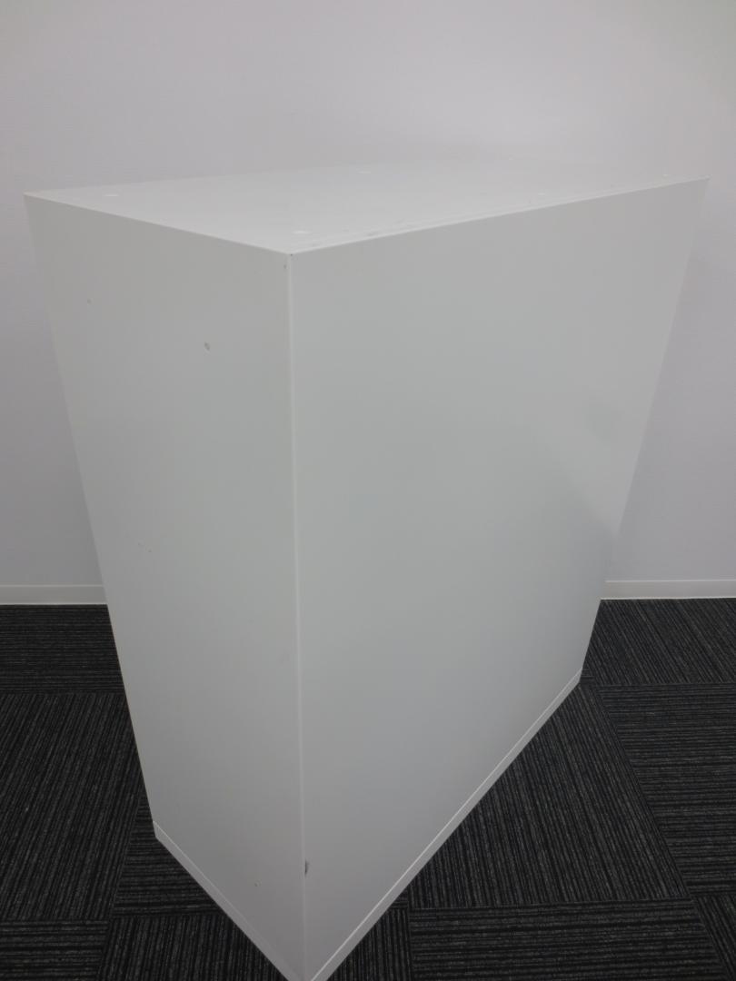 【オフィスの書類をスッキリ整理! 扉の無いタイプなので資料探しがラクラク!】■オカムラ(okamura)製 レクトライン(Rectline)シリーズ オープン書庫 ローキャビネット ■色:ホワイト ※扉外し商品のため外し跡がございます。