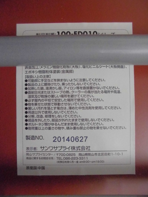 - 一部不具合あり天板歪み、アジャスター無し、キャスター使用不可ようなそのテーブルの本来の効用を果たすための機能以外の一部が使用不可な状態。(例、キャスターロッ ク機能使用不可、棚板無し等がある。)