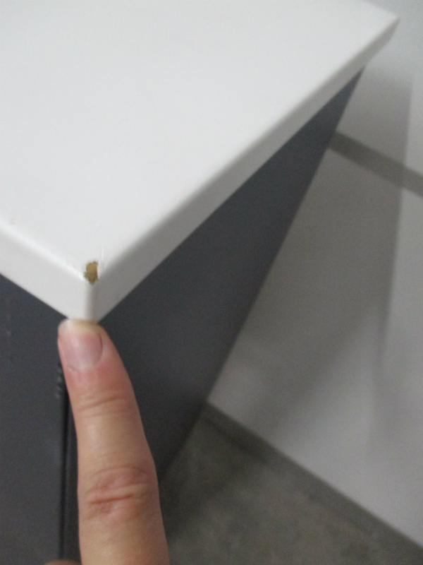 - 一部不具合あり天板歪み、引出開閉不可、アジャスター無し、施錠不可のようにそのカウンターの本来の効用を果たすための機能以外の一部が使用不可な状態。(例、引出が 開閉しづらい等がある。)