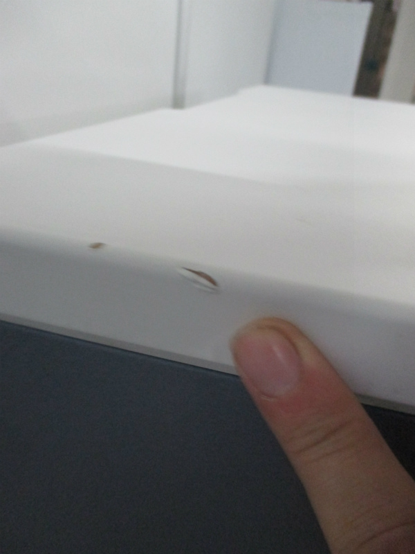- あり黄ばみ・変色が広い範囲にうっすらある、または濃い黄ばみ・変色が一部ある。(例、天板、正面、背後、サイド部分にある。)