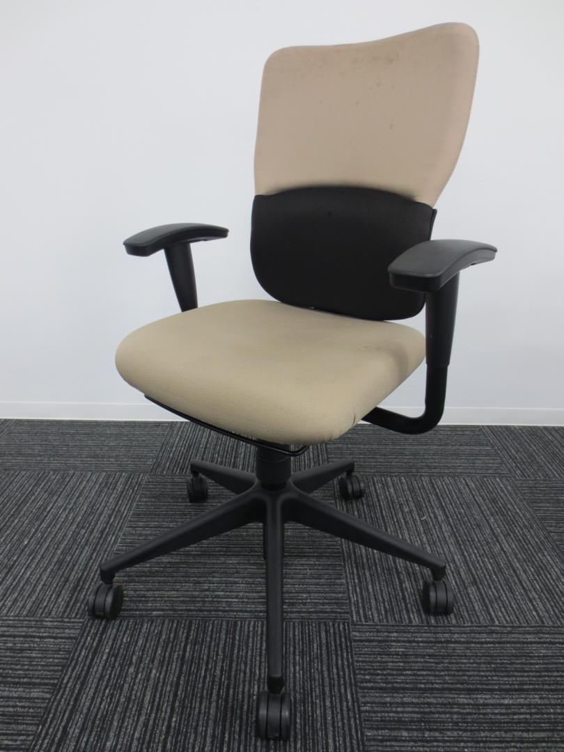 【クリーニング済み】【売れ筋商品】スチールケース製 レッツBチェア ベイジュ 可動肘付き ハイバック オフィスチェア 肘付で背もたれ上下昇降機能付き!【相模原・町田店】- 春日部・越谷店