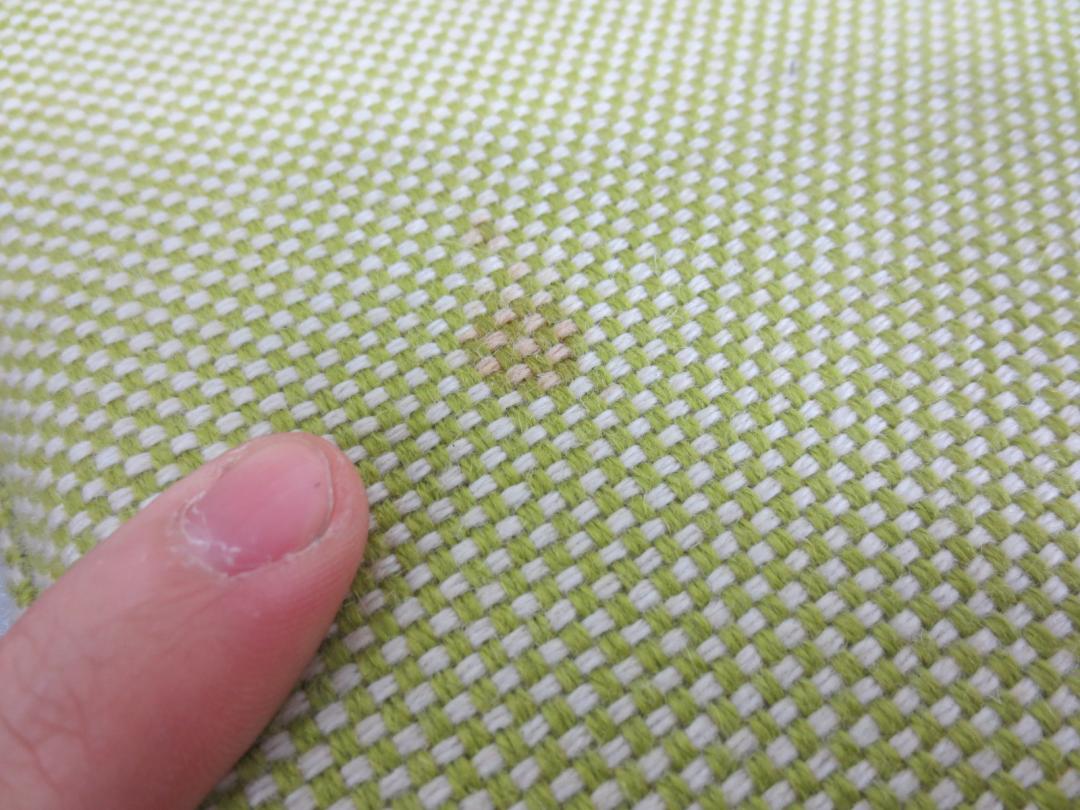 こちらの商品は座面に一箇所染みがあり、足に傷もありますが、