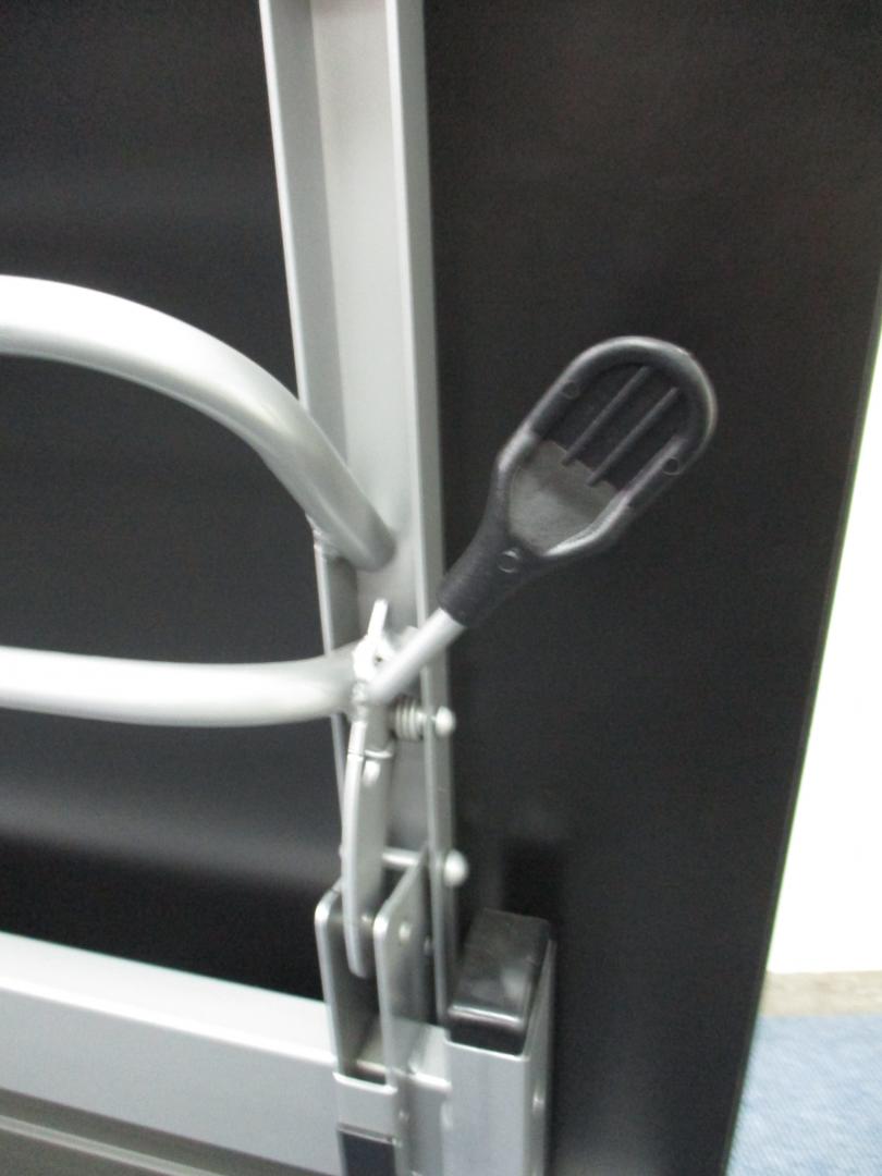 - 一部不具合あり天板歪み、アジャスター無し、キャスター使用不可ようなそのテーブルの本来の効用を果たすための機能以外の一部が使用不可な状態。(例、キャスターロッ ク機能使用不可、棚板無し等がある。)