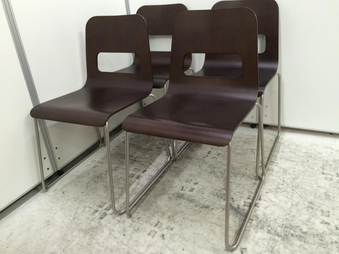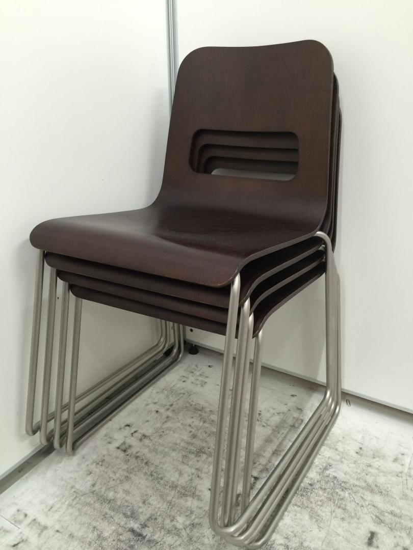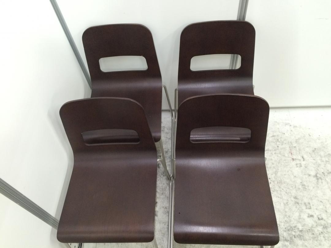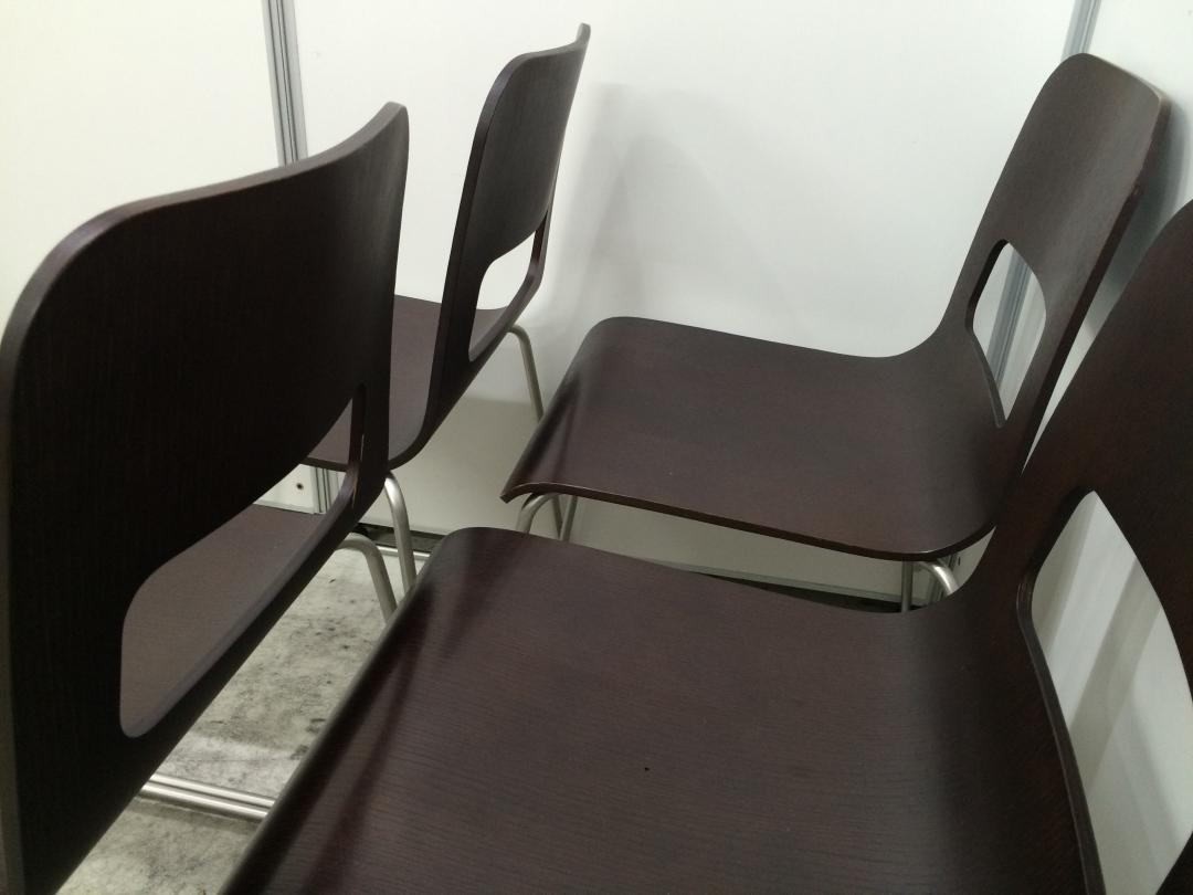 スタッキングチェアは濃い色の木目調のチェアーとなっております。