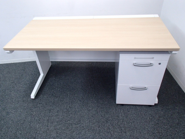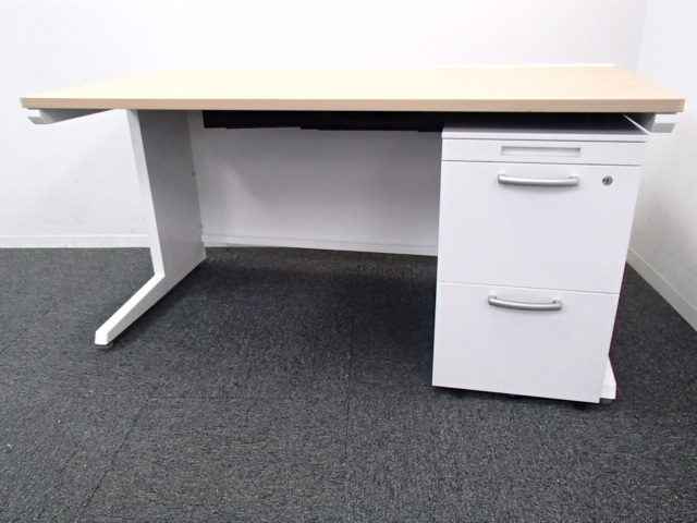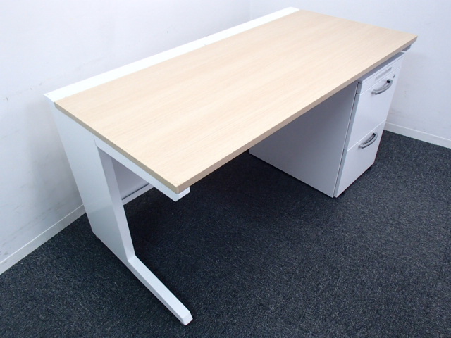 【11/10・4台入荷予定】【ゆとりのあるワークスペースで作業効率アップ!】■オカムラ(okamura)製 アドバンス(ADVANCE)シリーズ 平机 引き出し無し W1400×D700×H720mm ■ホワイト / 天板:ナチュラル木目調