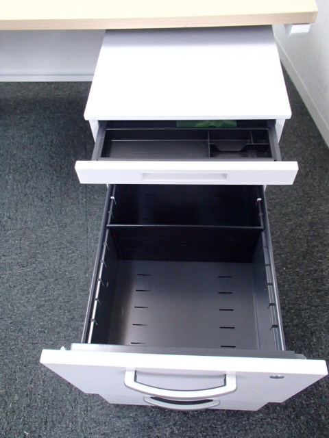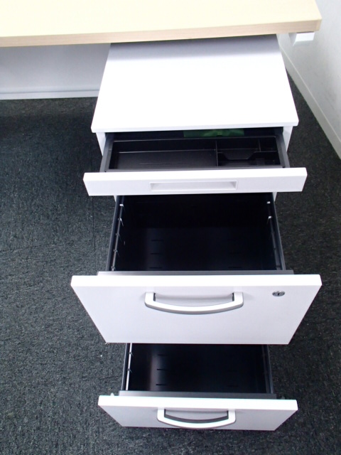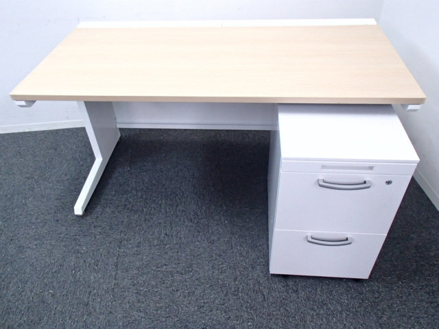 オカムラ製の平机+3段ワゴンのセット商品になります。