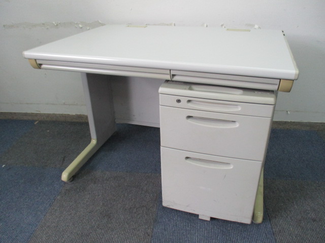 【通常¥17,000⇒¥15,000に!!】オカムラ製 片袖机 幅1000mm&オカムラ製 3段ワゴン【10セット揃います】- 千葉店