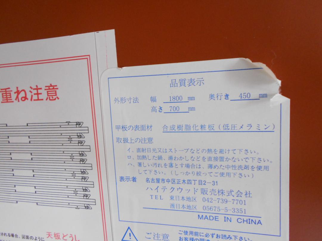 - かなり強い濃い黄ばみ・変色が商品全体にある。(例、天板、幕板、棚板、サイド部分、脚部等にある。)