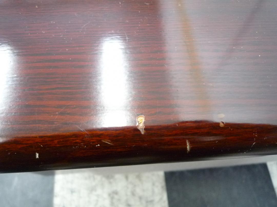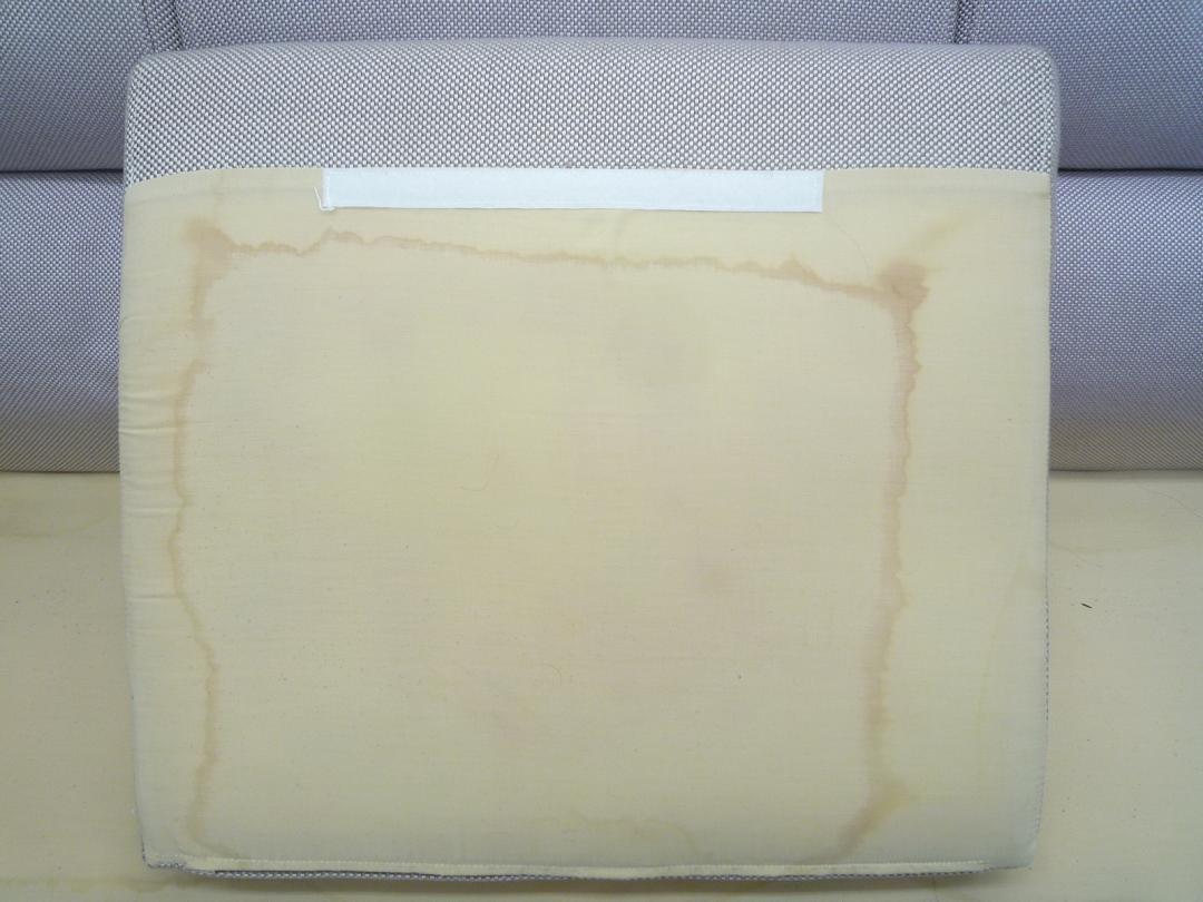- あり黄ばみ・変色が広い範囲にうっすらある、または濃い黄ばみ・変色が一部ある。(例:三人用ソファ、二人用ソファ、一人用ソファの場合、背もたれ、肘かけ、座面等、 センターテーブルの場合、天板、脚にある。)