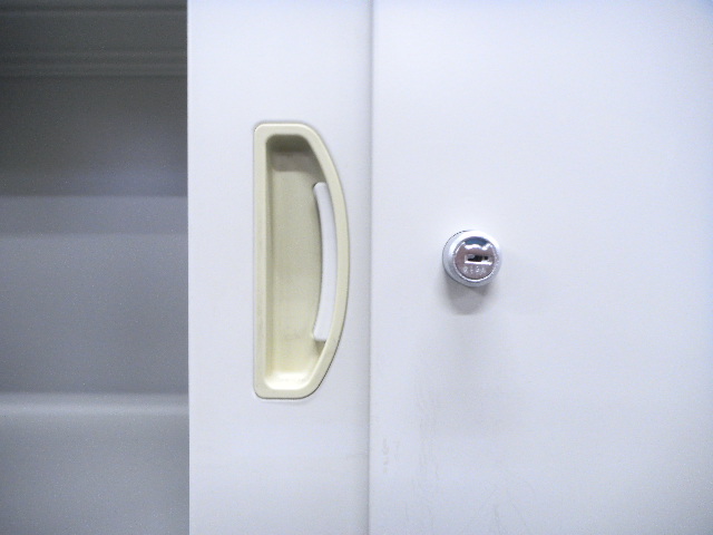 - 一部不具合ありそ引出の開閉不可、施錠不可、棚板無しといったの書庫の本来の効用を果たすための機能以外の一部が使用不可(例、扉、引出の開閉がしづらいなどがある。 )