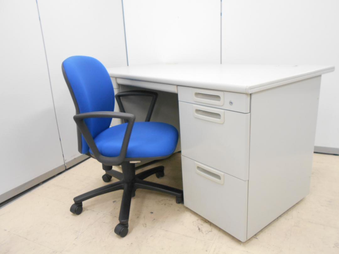 肘付のシンプルチェアと両袖机をセットにしました。 プラス製LAシリーズデスク+イトーキ製リエットチェア- なんば日本橋店
