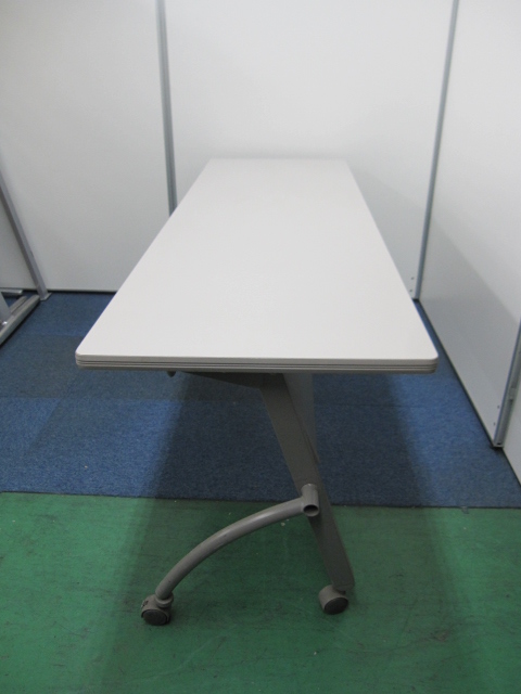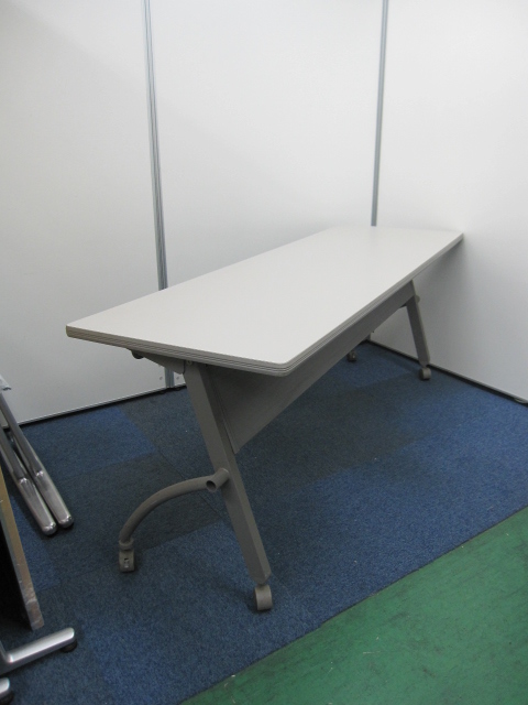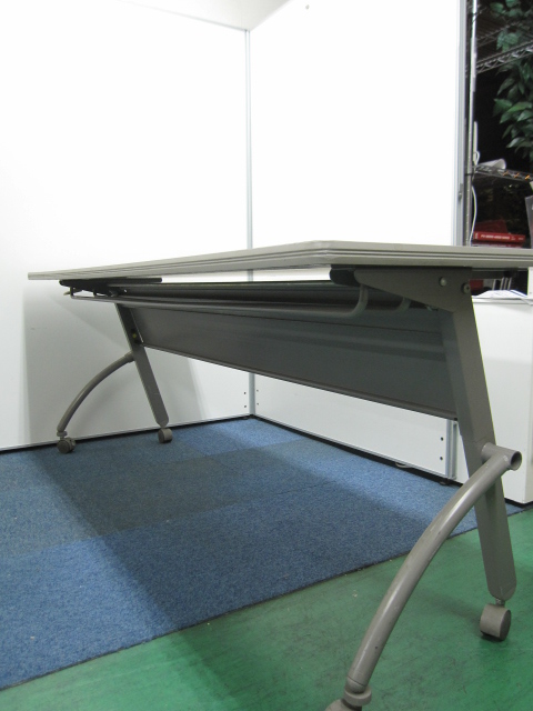 【会議テーブル】サイドスタックテーブル(幕板付)カラー:ニューグレー(WE色)【フォールディング】【フラップ】【特価】- 品川・三田店