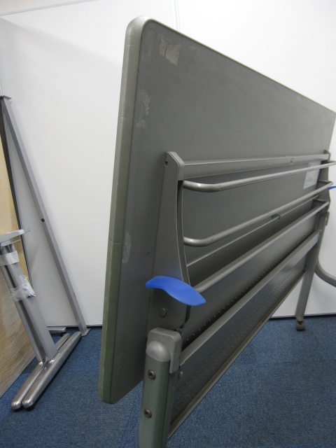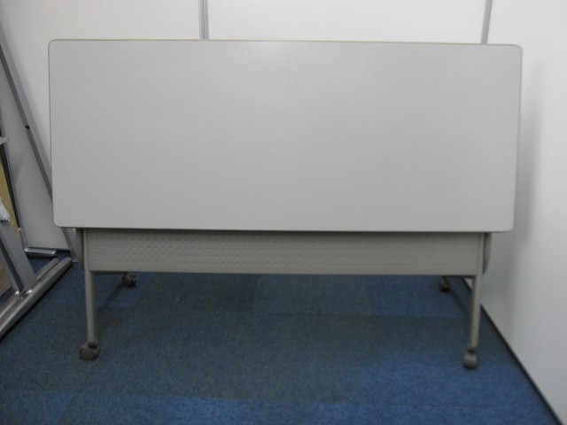 【おつとめ品】【会議テーブル】サイドスタックテーブル(幕板付)カラー:ニューグレー ※天板に細かいキズ(裏面にも)脚部にもキズ多い為安い【フォールディング】【フラップ】【特価】- 品川・三田店