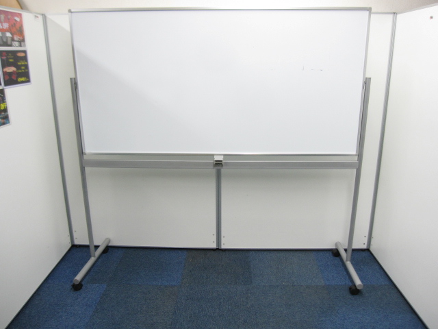 【おつとめ品】【オフィス家具】両面無地の板面(W1800mm×H900mm) 脚部キャスター付 ※定番のホワイトボードです【事務用品】- 品川・三田店