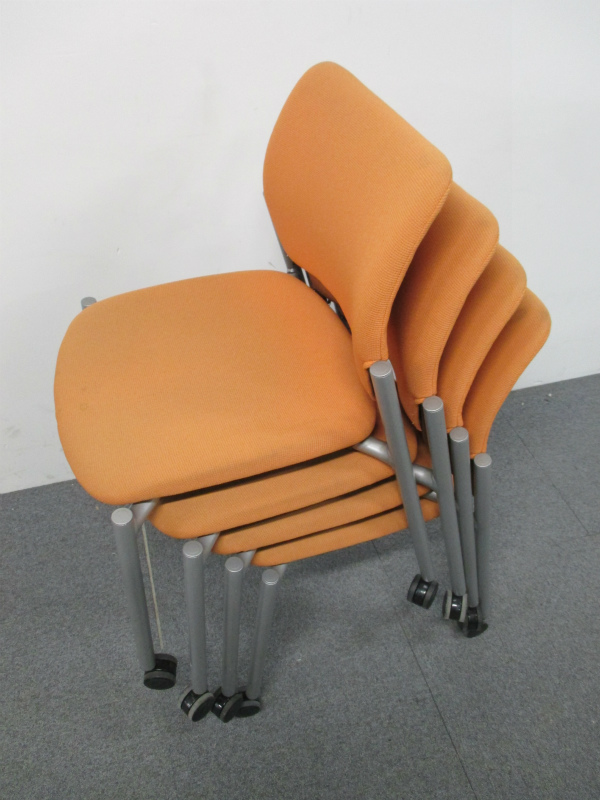 【4脚揃います】4名掛けの会議室にオススメ!!オカムラ製スタッキングチェア【中古オフィス家具】- 川崎店