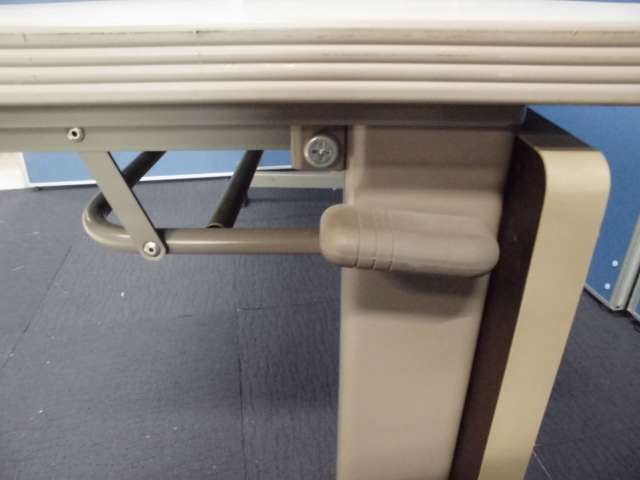 - 一部不具合あり天板歪み、アジャスター無し、キャスター使用不可ようなそのテーブルの本来の効用を果たすための機能以外の一部が使用不可な状態。(例、キャスターロッ ク機能使用不可、棚板無し等がある。)