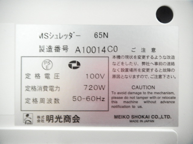 明光商会製の定番業務用シュレッダー、MSシリーズより65Nの入荷です。