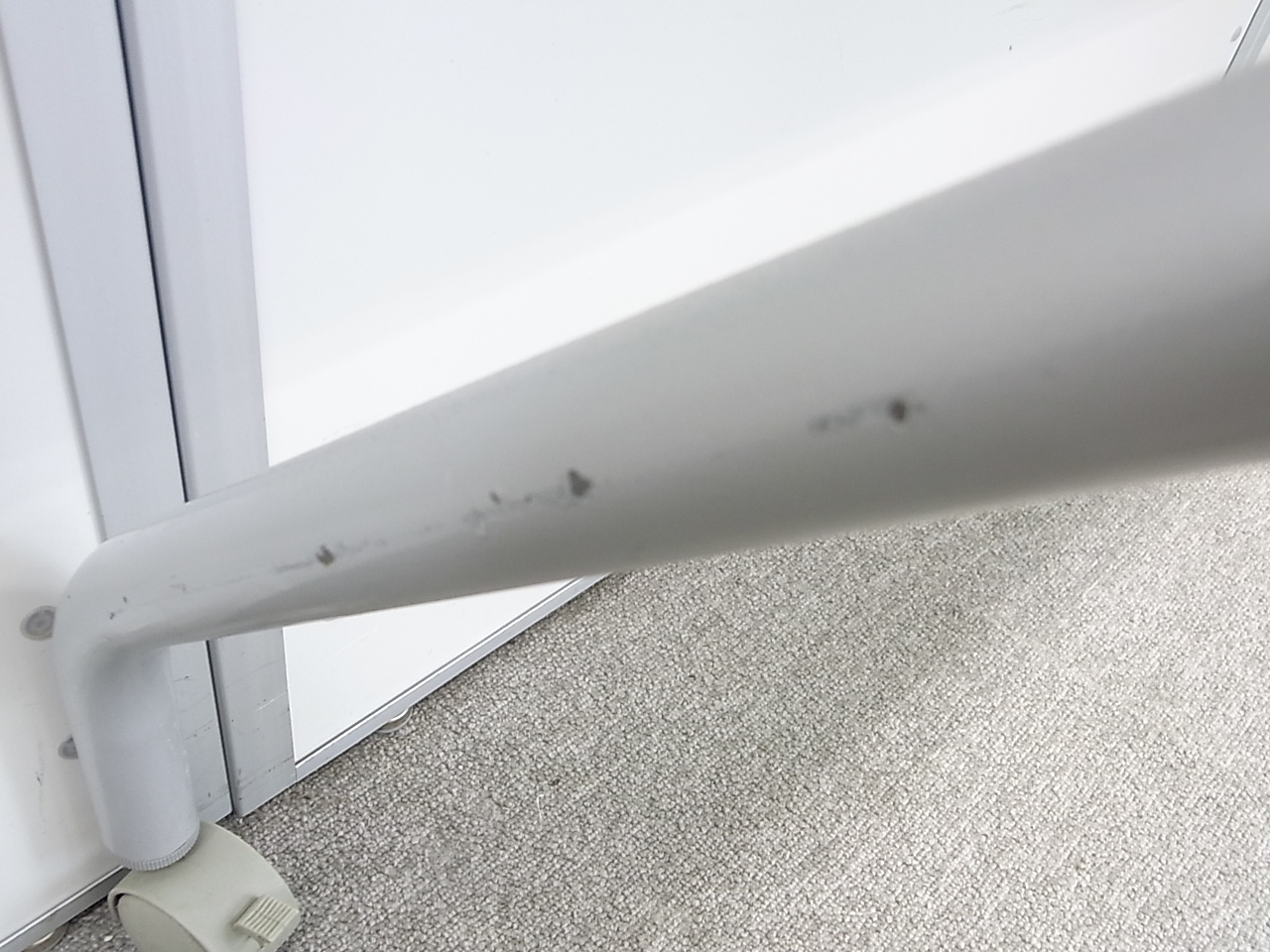- 一部不具合あり天板歪み、アジャスター無し、キャスター使用不可ようなそのテーブルの本来の効用を果たすための機能以外の一部が使用不可な状態。(例、キャスターロッ ク機能使用不可、棚板無し等がある。)