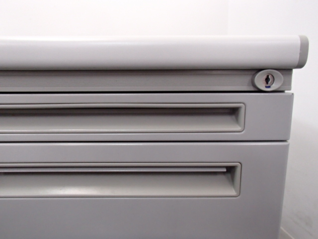 - シンプルながらも使いやすい工夫があります。ロックは、一度の施錠ですべての引出しの鍵がかかるオールロック機構。