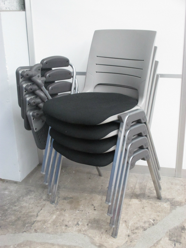 【セット商品】中古希少なメモ台付きスタッキングチェア4脚セット エレナシリーズ 【中古会議用チェア ミーティングチェア】- 川崎店