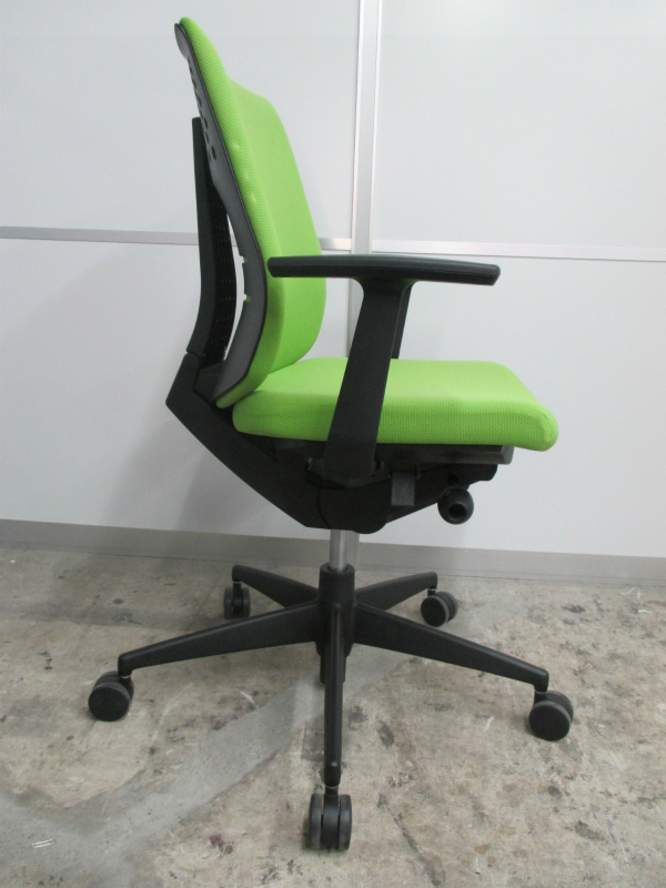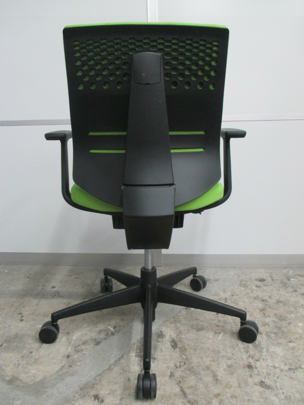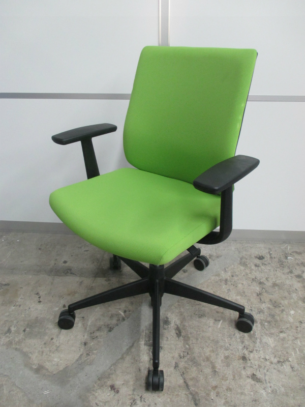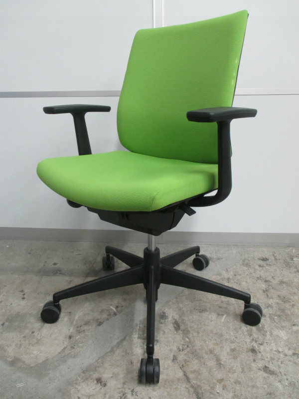 【関西倉庫在庫】コクヨ製 ウィザードシリーズ イエローグリーン 樹脂脚 固定肘 肘付きローバックチェア 【弊社使用欄: A01019819】