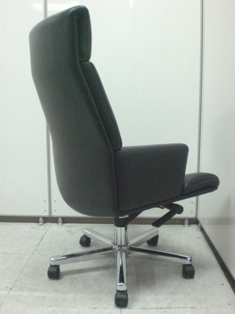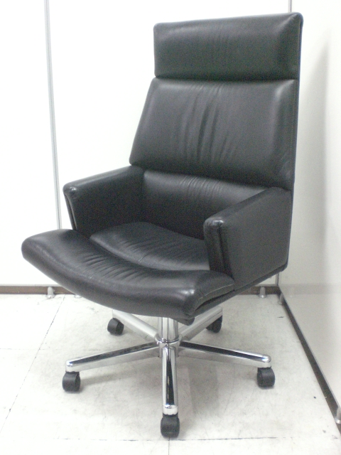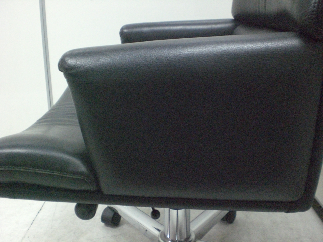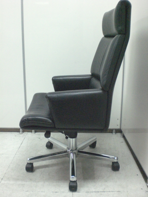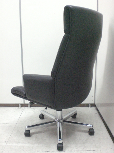 【1脚入荷】役員用チェア レザー張り 背もたれ長めで座りやすい 色はシックなブラック- 京都東寺店