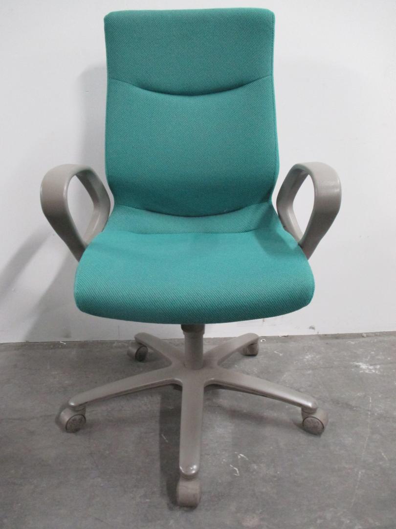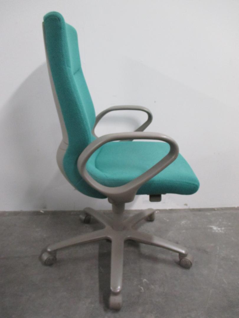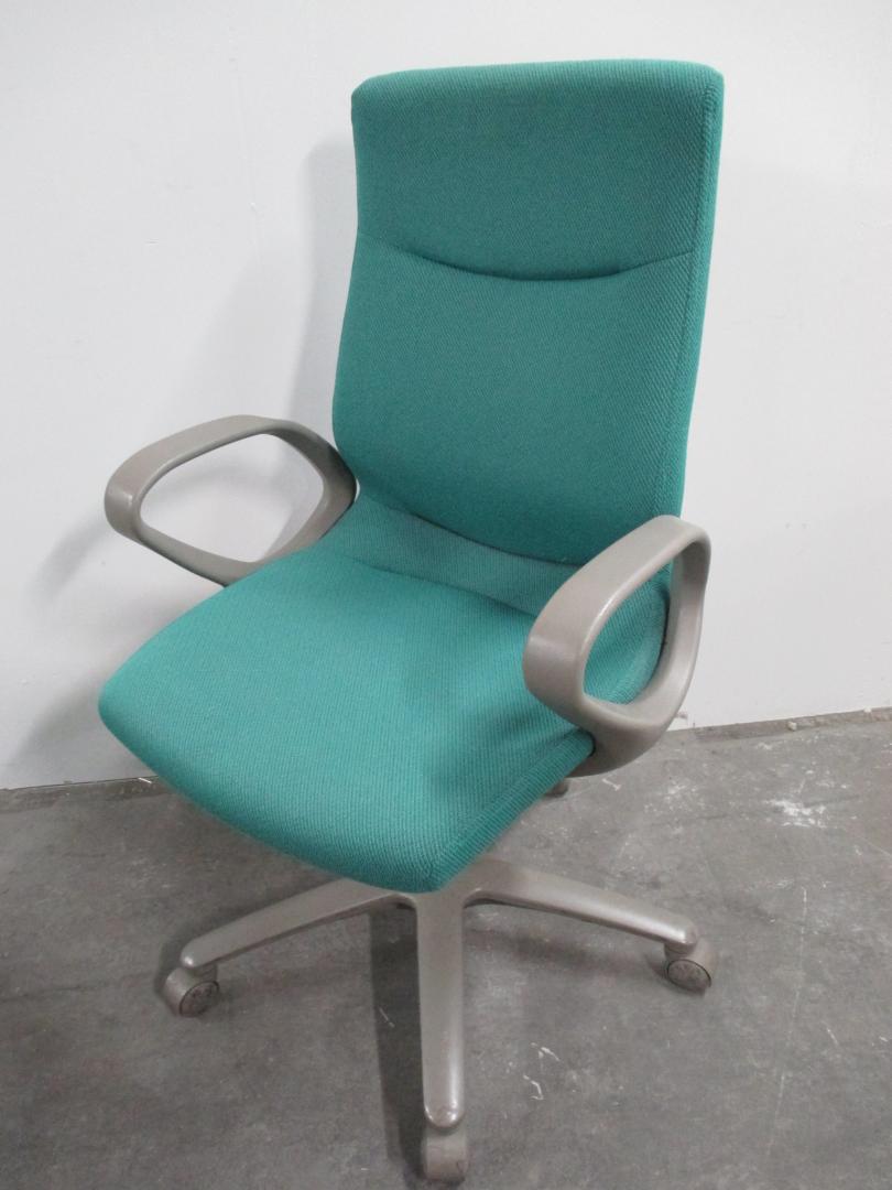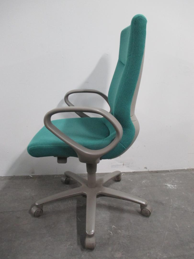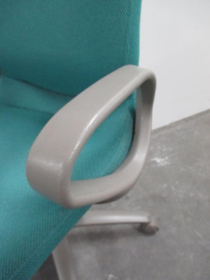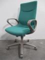 ハイバックのグリーン肘付きチェアです。