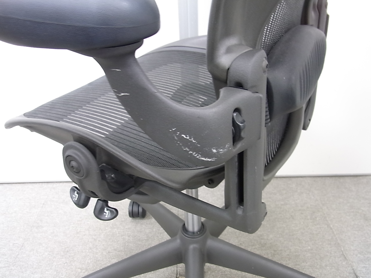 【★状態イマイチのためお安く!】■ハーマンミラー製 アーロンチェア Bサイズ 固定肘 ※キズあり・ランバーサポート無・昇降ガス圧弱めのためお安く!【訳あり特価品】